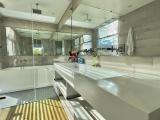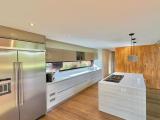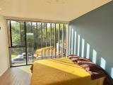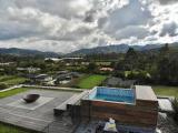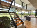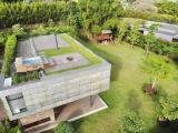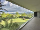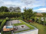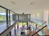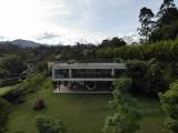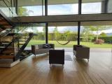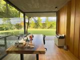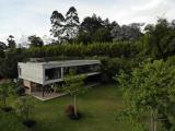 Country house with an avant-garde and elegant design, with a sophisticated architectural style that combines materials such as polished cement, glass, wood and steel. With a privileged location, the house offers a quiet and very green view of its natural environment. The interior design is minimalist and functional, with a combination of neutral colors and unique and elegant details that give it a luxurious and refined atmosphere.