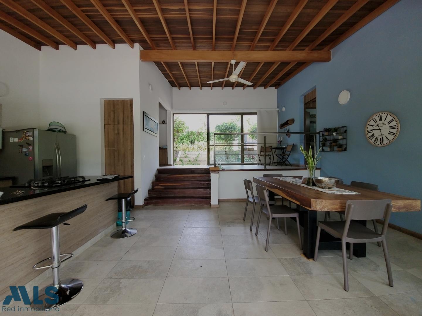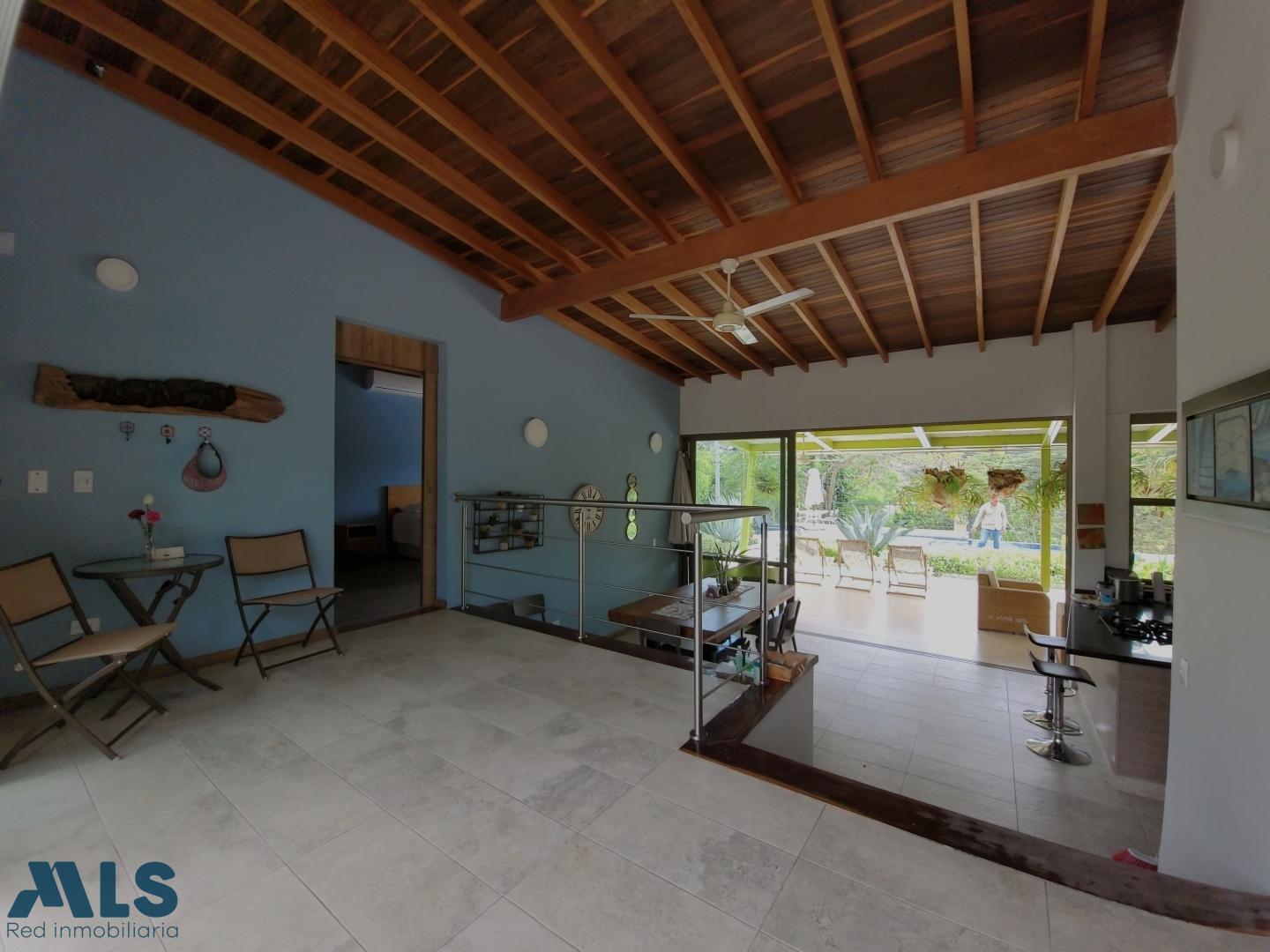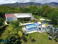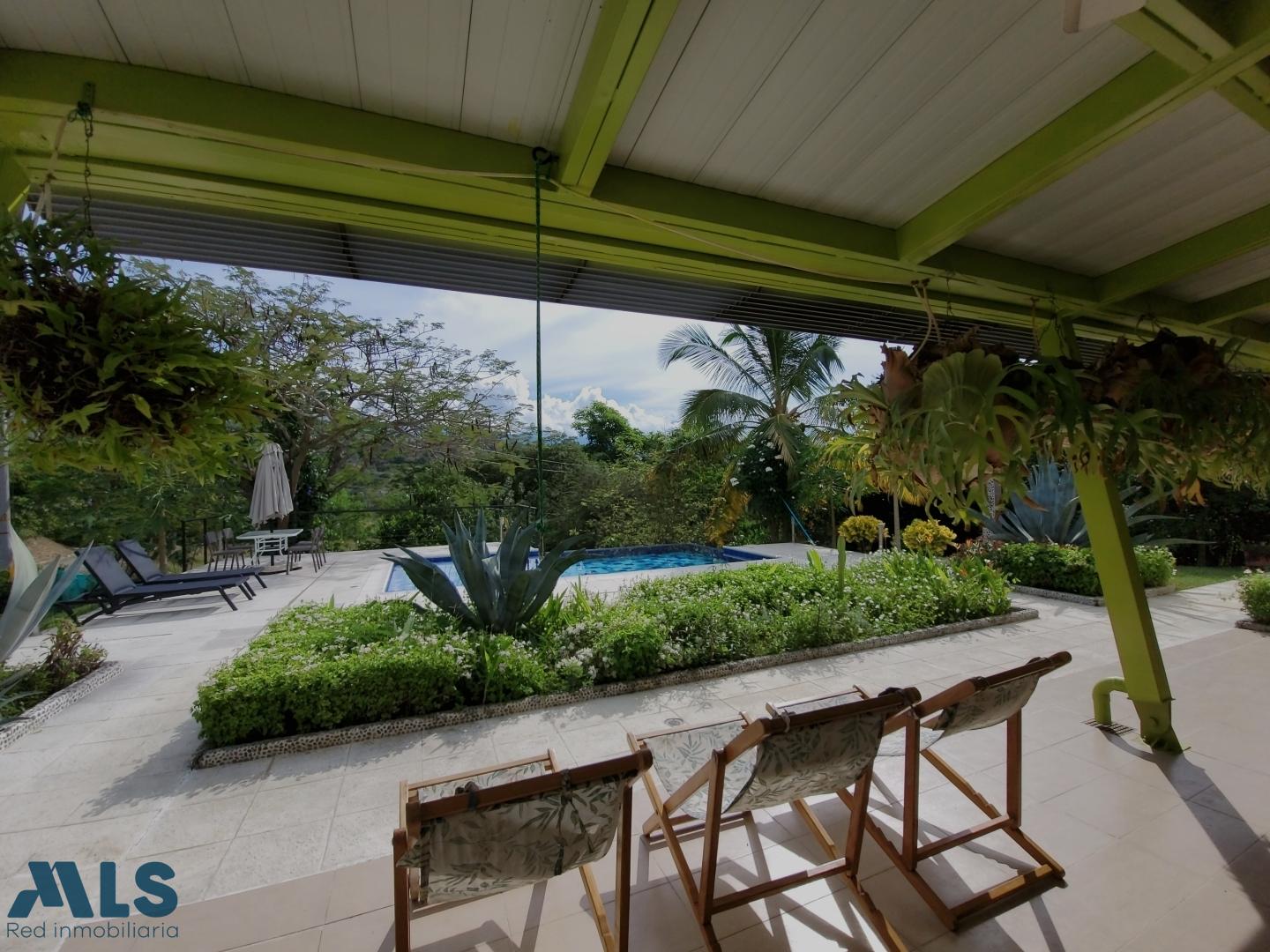 Farm for sale in a gated community in Santa Fe de Antioquia. It consists of a 1767 m² lot and a 207 m² house with 4 air-conditioned bedrooms, 3.5 bathrooms, a pantry, and a laundry room. It features solar energy connected to the EPM grid and a private swimming pool. The lot includes fruit trees (mangoes, oranges, tangerines, lemons, soursop, loquat, coconut, tamarind, cacao, avocado, plantain, and lime), gardens, and shade trees (cedar, ceiba, guayacan, and oak). The house is being sold furnished. Additionally, the solar panels generate more energy than consumed, resulting in a reimbursement from EPM ($70,000 COP).