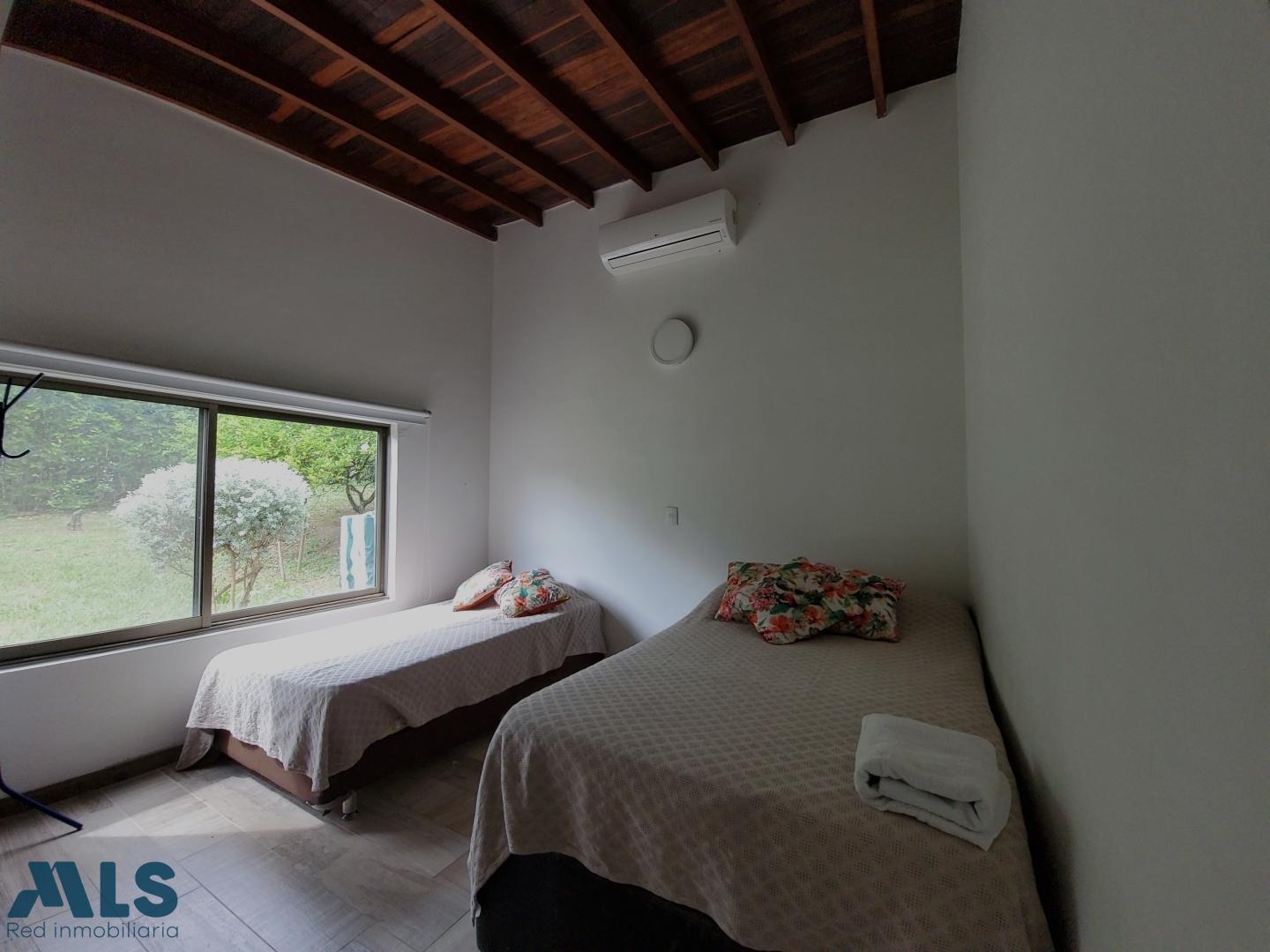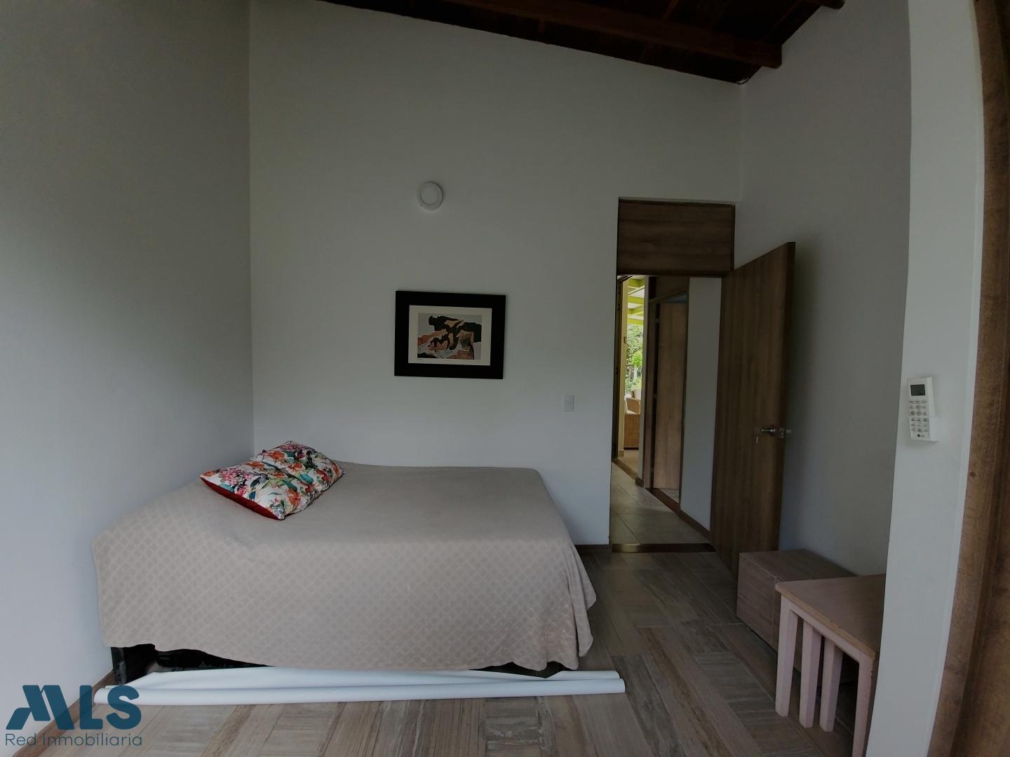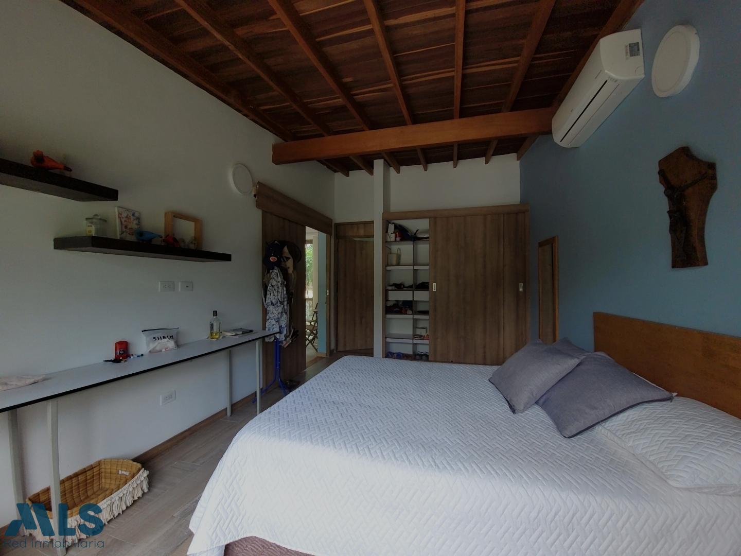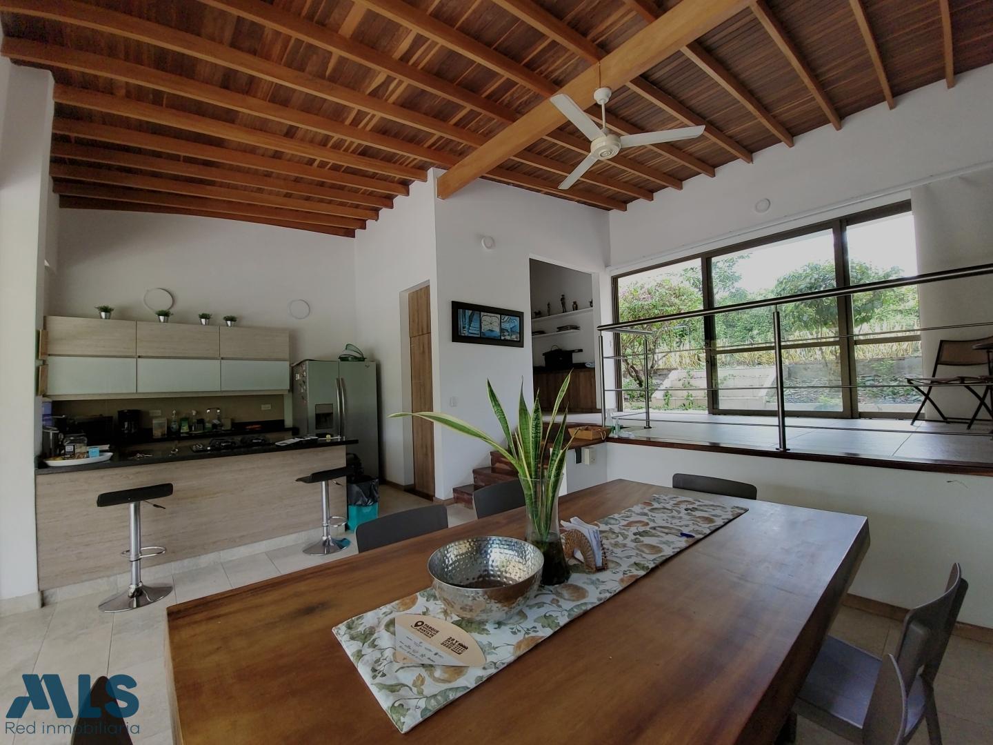 Farm for sale in a gated community in Santa Fe de Antioquia. It consists of a 1767 m² lot and a 207 m² house with 4 air-conditioned bedrooms, 3.5 bathrooms, a pantry, and a laundry room. It features solar energy connected to the EPM grid and a private swimming pool. The lot includes fruit trees (mangoes, oranges, tangerines, lemons, soursop, loquat, coconut, tamarind, cacao, avocado, plantain, and lime), gardens, and shade trees (cedar, ceiba, guayacan, and oak). The house is being sold furnished. Additionally, the solar panels generate more energy than consumed, resulting in a reimbursement from EPM ($70,000 COP).