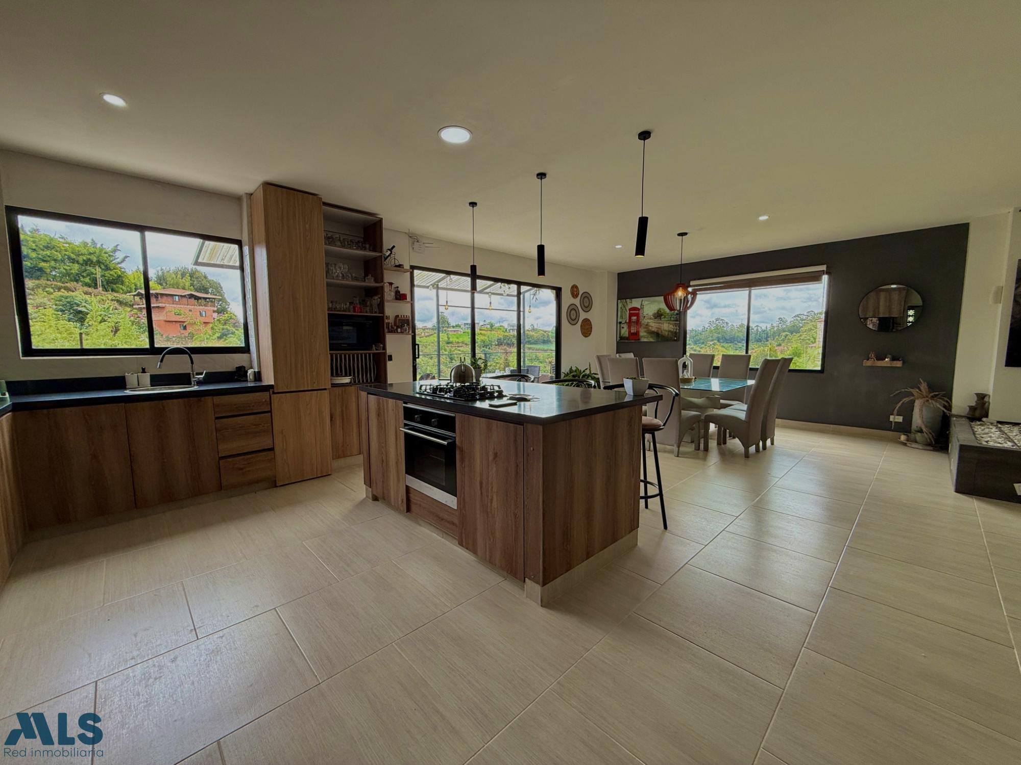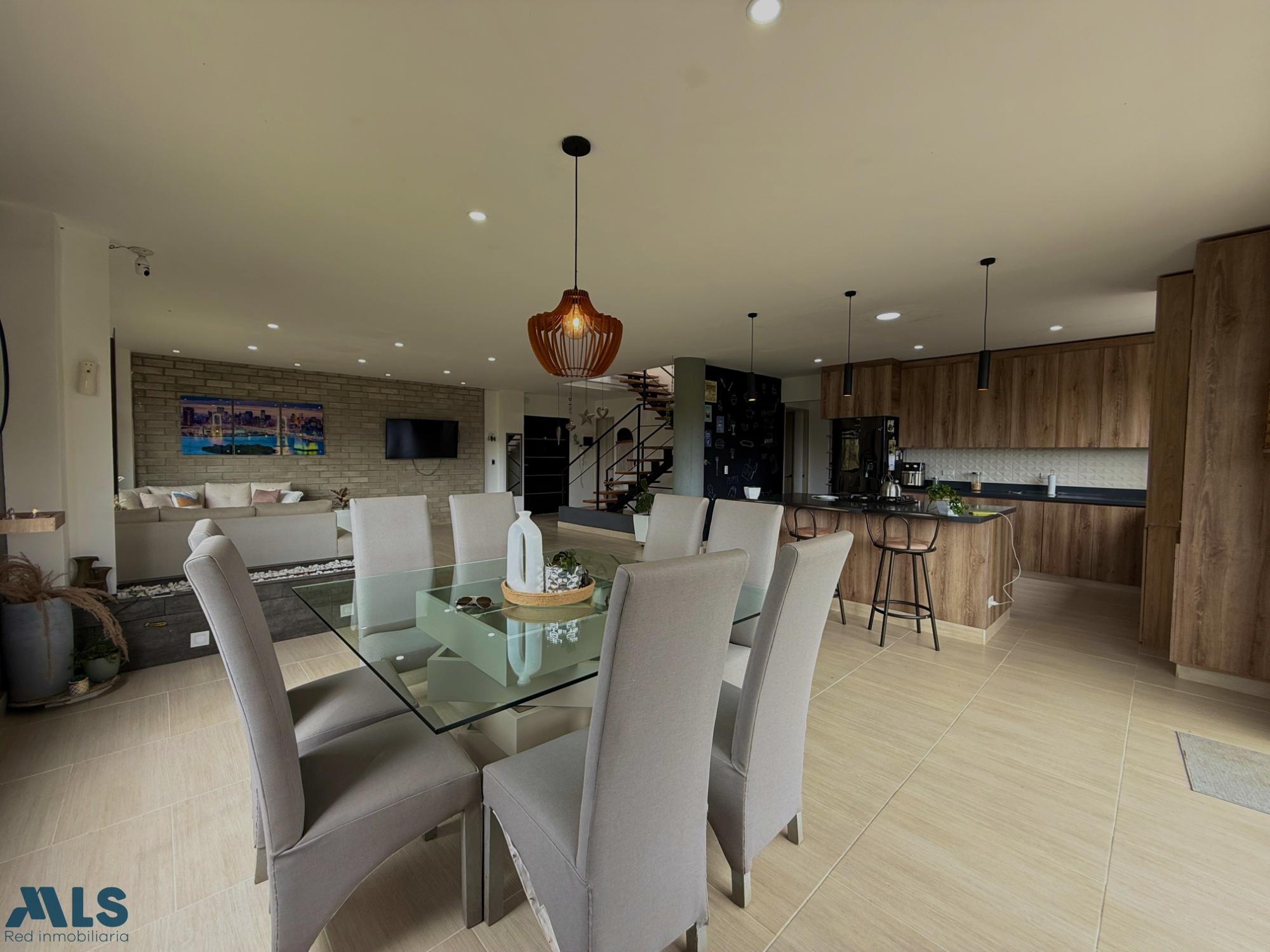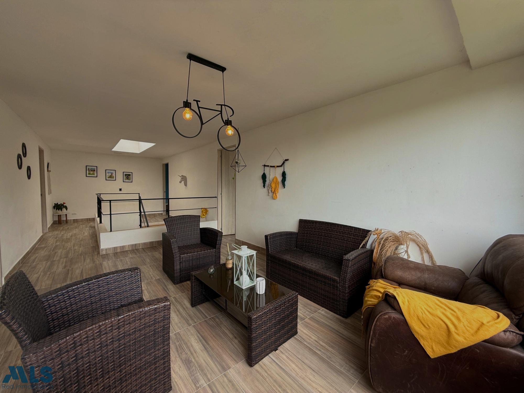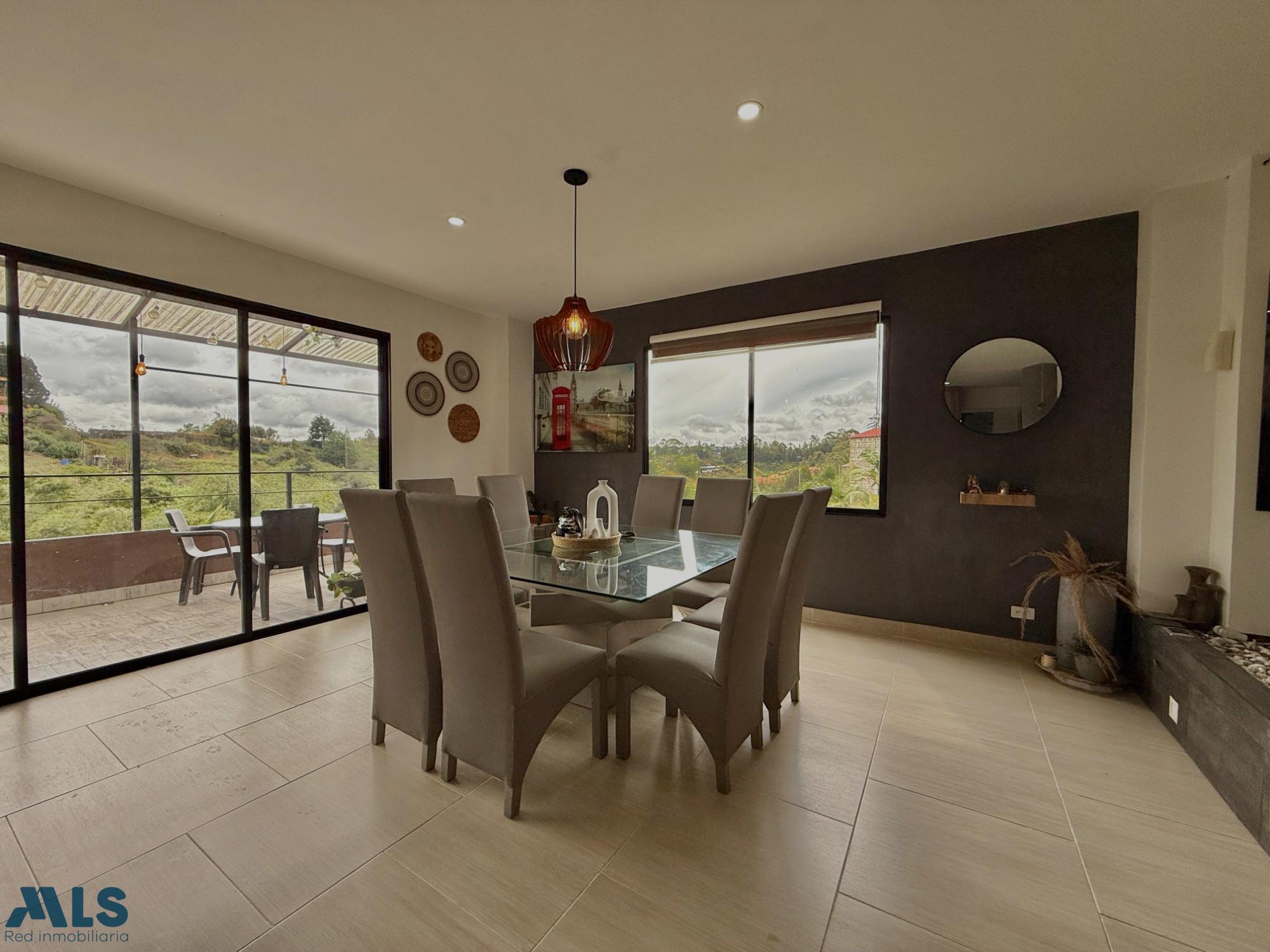 Country house in Marinilla, Vereda el Socorro. Spacious, modern, and bright, surrounded by greenery and offering a fresh atmosphere. It has four bedrooms with bathrooms and dressing rooms. A living room, dining room, open kitchen, fireplace, and balcony with beautiful green views are featured. The property price also includes two separate, fully-equipped cabins for tourist rentals, generating year-round profitability. The house is spread over three levels: the sub-level houses the parking and utility room, the first level houses the social area, and the top level houses the bedrooms. Just 13 minutes from Marinilla Park. Access is via 98% paved roads. This is a unique opportunity to enjoy the tranquility of the countryside and generate additional income. Option to sell furnished for an additional price. Contact us for more information.