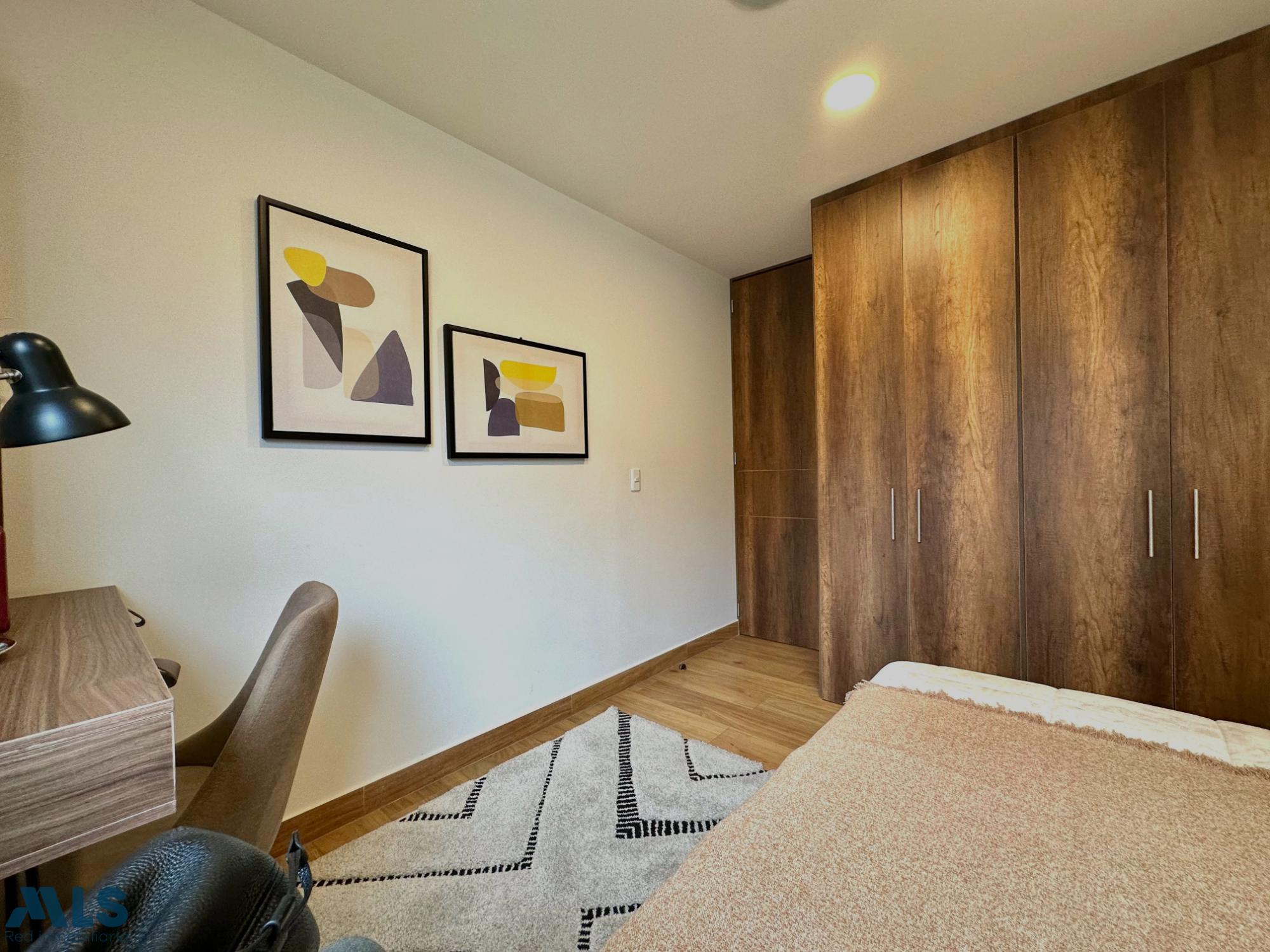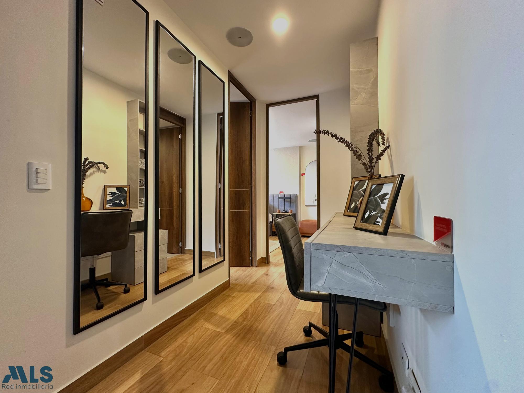 Brand new apartment located in Envigado, El Escobero. The apartment has a surface area of 74.46 square meters. It includes two bedrooms, two bathrooms, a balcony, a study, a laundry area, one parking space, and a utility room. The unit will feature common areas such as a children's play area, a game room, a coworking space, a social lounge, a gym, a pet area, a BBQ area, a kitchen/dining room, a solarium, a pool, and a jacuzzi. The approximate delivery date is August 2028. The investment value is $730,000,000.