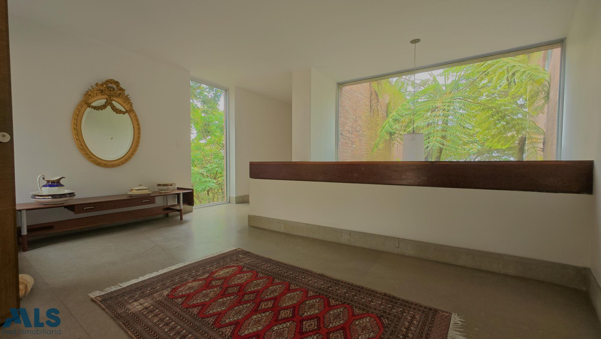 Esta espectacular casa campestre de dos niveles con espacios interiores amplios, realzados por una imponente doble altura que aporta luminosidad y amplitud. Casa ¡Moderna, exclusiva, encantadora! te brinda acabados modernos Rodeada de verde y tambien puedes disfrutar en algunas areas de la casa de una hermosa vista a la ciudad desde amplios ventanales que rodean toda la casa y que te permiten divisar su hermoso entorno. Subnivel que puedes usar para tener un apartamento independiente o un gimnasio, sauna, sala de cine o lo que desees. paneles solares cuarto útil . Unidad con doble portería con acceso por Los Balsos o Las Palmas, el precio de la administración incluye el valor del agua. Cuenta con 2 parqueaderos exteriores, cubiertos y 5 descubiertos