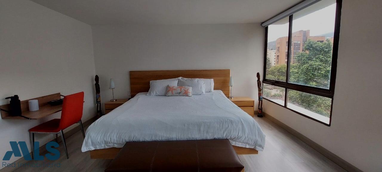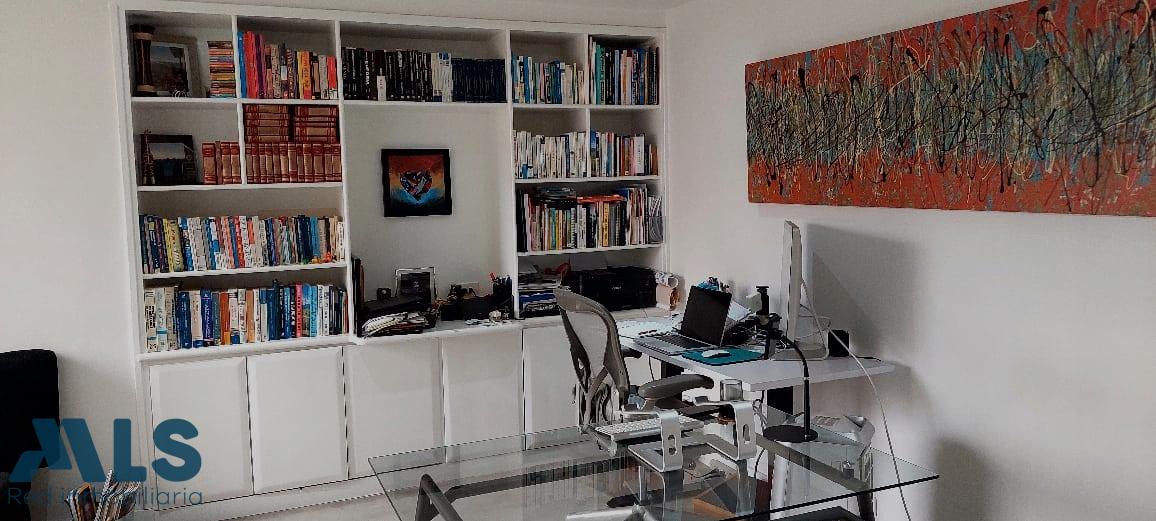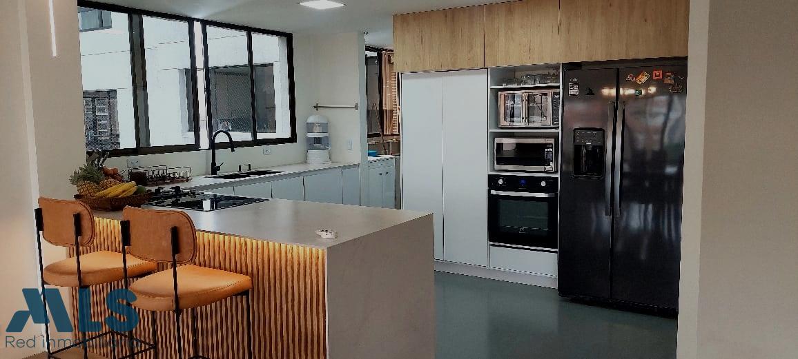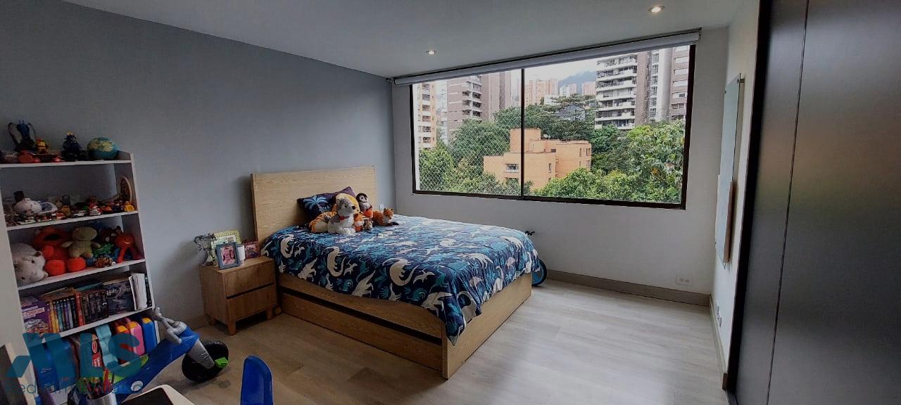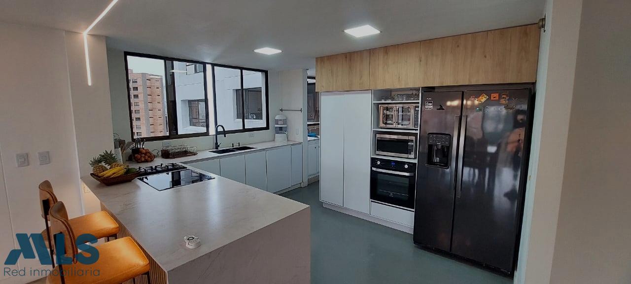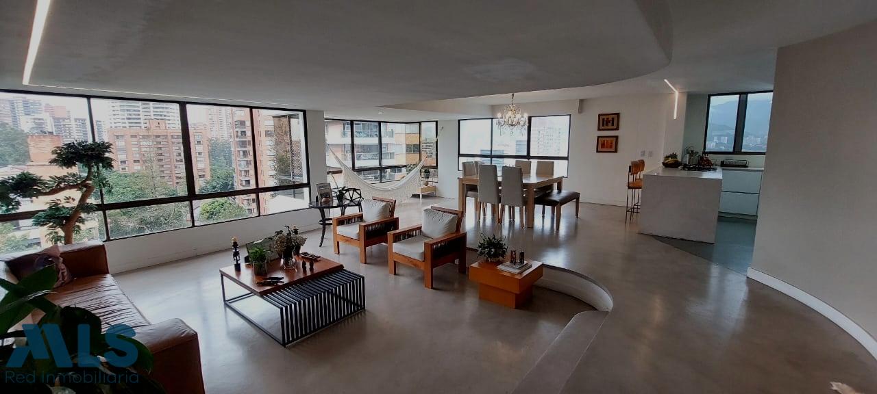 Modern apartment in Loma de Alejandria, in El Poblado, featuring three bedrooms with full bathrooms and dressing rooms, and a fourth bedroom with a closet, a living room, a dining room, a separate living room, a utility room, a library, and a laundry area. It also has two parallel parking spaces and a utility room. It does not have a balcony. It also has a social room, children's games, an environmental trail, and a gazebo for meetings or parties.