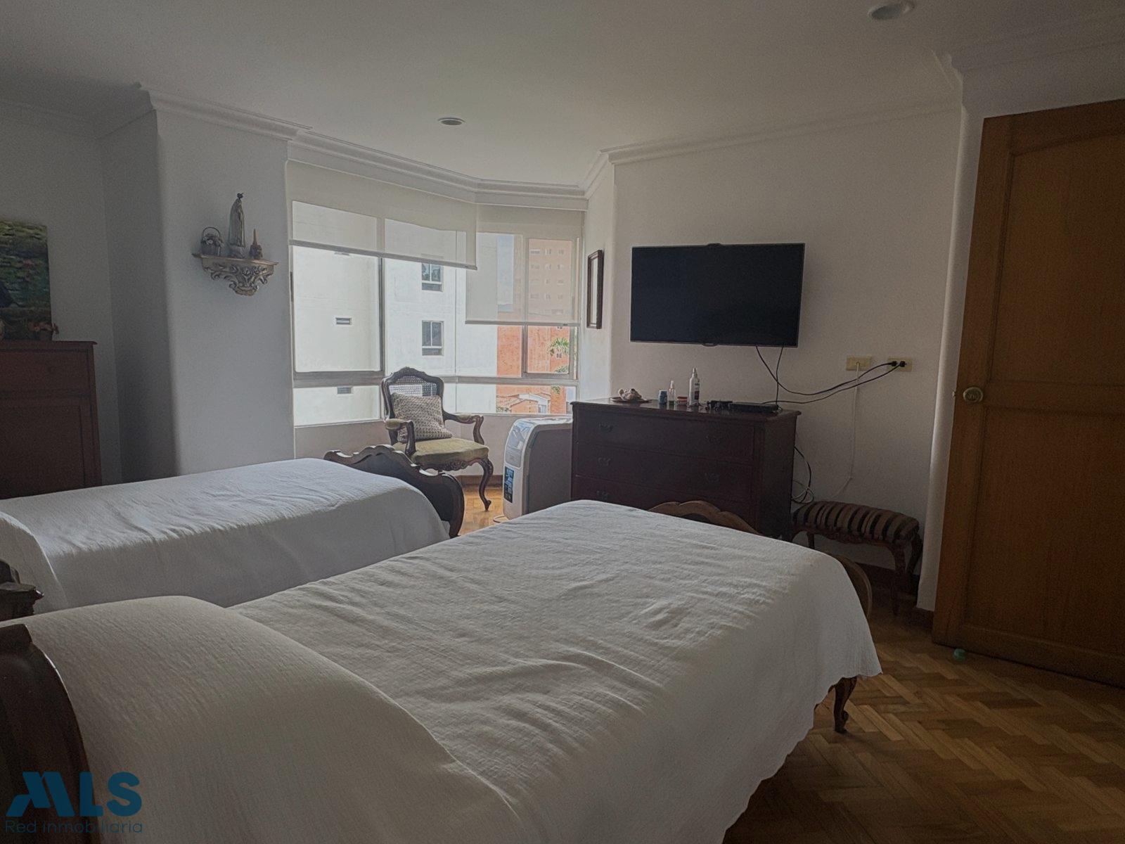 Spacious and bright apartment with an excellent location near the Santa Teresita Church and the second Laureles Park, in a quiet neighborhood with easy access to restaurants, supermarkets, and other services. The apartment has 214 m² distributed in four bedrooms, two of them with a bathroom and dressing room, and two that share a bathroom, each with its own closet. It also has a maid's bedroom with bathroom, a guest bathroom, a linen closet, a spacious living-dining room, a library, two balconies, and a remodeled kitchen. In excellent condition, it has no west exposure, with only one apartment per floor. It includes two parallel parking spaces. The building offers 24-hour doorman, visitor parking, and closed-circuit TV.