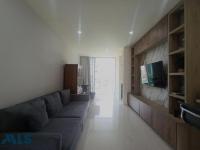 Apartment for sale with 3 bedrooms, each with a private bathroom, 2 with closets and 1 with a dressing room. It features porcelain tile floors, a living-dining room, a fully equipped kitchen with a breakfast bar, a laundry area with a door, and a storage heater. It also has a half bathroom, a balcony, a linen closet, and LED lighting. The building has 9 floors, a single tower with 3 apartments per floor. The common areas are located on the terrace and include a Jacuzzi, a steam room, a gym, and a social lounge, offering spaces for comfort and recreation.