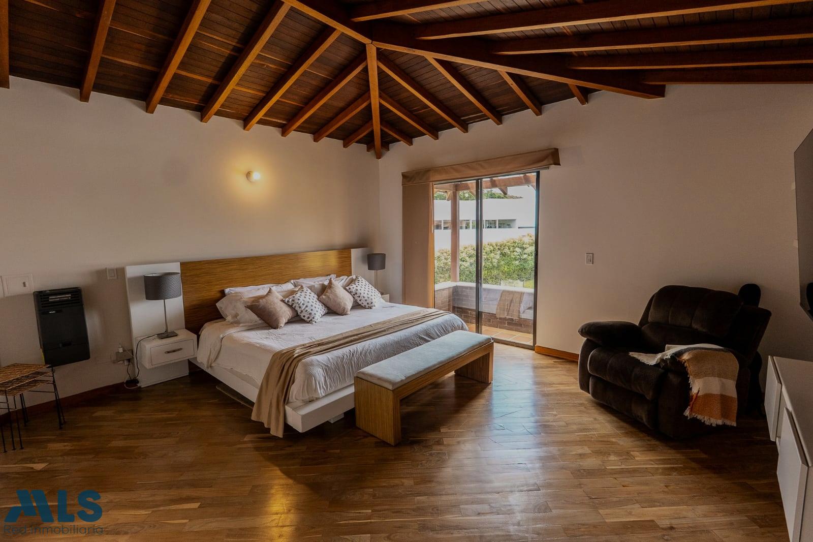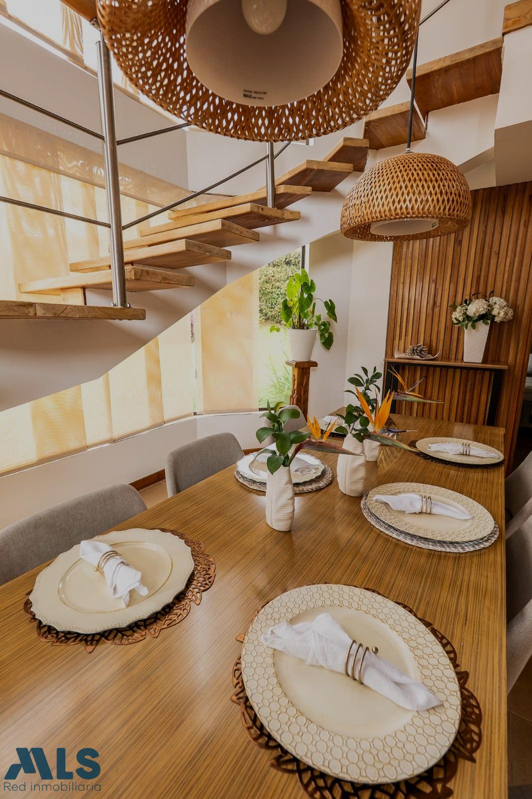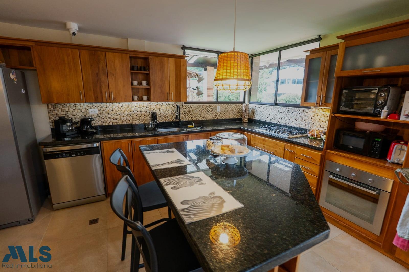 Beautiful furnished traditional home in the quiet Altos del Escobero area, surrounded by greenery. 350 m2 of constructed area and 1,001 m2 of land, distributed in 4 bedrooms, 4 bathrooms, open kitchen, service bedroom with full bathroom, living room, dining room, fireplace, terrace and a large green area with a tree house. Gated community with children's playground, gym and social room.