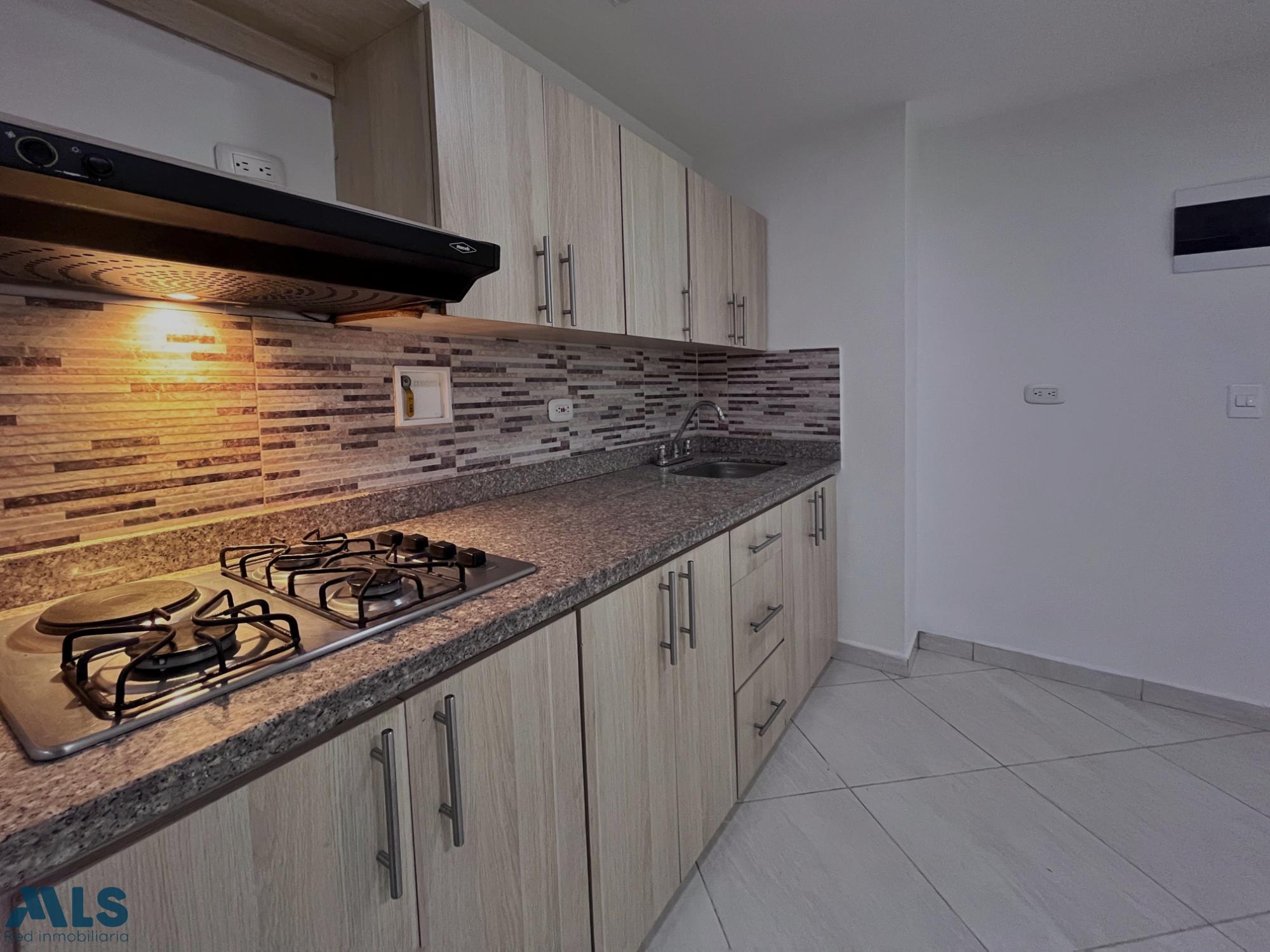 Aparta estudio en edificio en una ubicación excelente, a media cuadra de la avenidas las vegas y a dos cuadras del centro comercial Mayorca. Cuenta con 40 m2 construidos, habitación independiente con vestier, baño completo, salón comedor, cocina abierta, balcón con vista al occidente. No tiene parqueadero. Edificio con ascensor y sin portería.