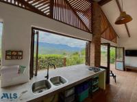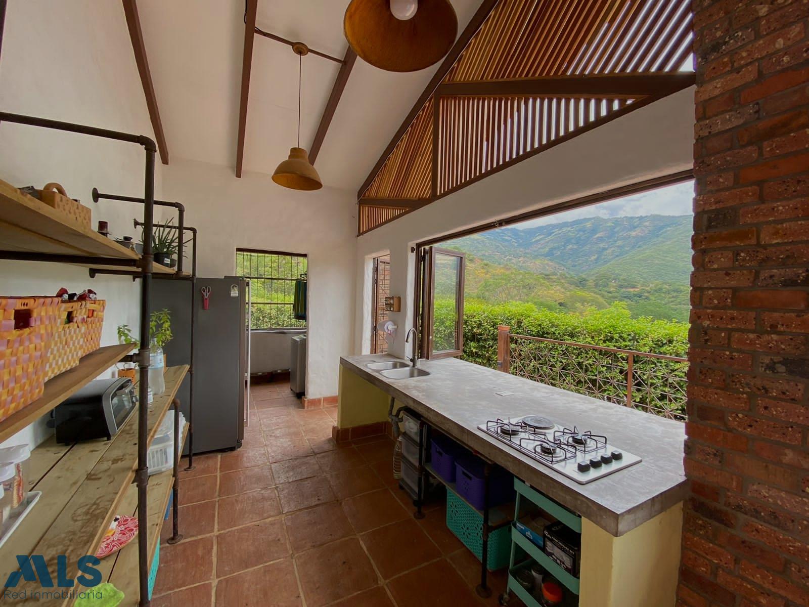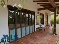 Hermosa Casa campestre estilo colonial, con jacuzzi, ubicada en Sopetrán Antioquia tiene 200 m2 construidos +28 m2 de deck, con vista panorámica a las montañas, casa de 1 nivel, area del lote 1.217 m2 cuenta con 3 habitaciones cada una con baño, la principal con vestier, baño social, sala, comedor, cocina integral, zona de ropas, amplios corredores alrededor de la casa, piso en baldosa de barro artesanal, parqueadero para 5 carros y cuarto útil, árboles frutales, servicios públicos de EPM, además cuenta con agua de riego veredal. Portón de acceso eléctrico. Unidad cerrada con 35 casas independientes.