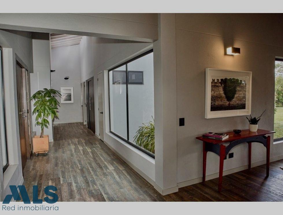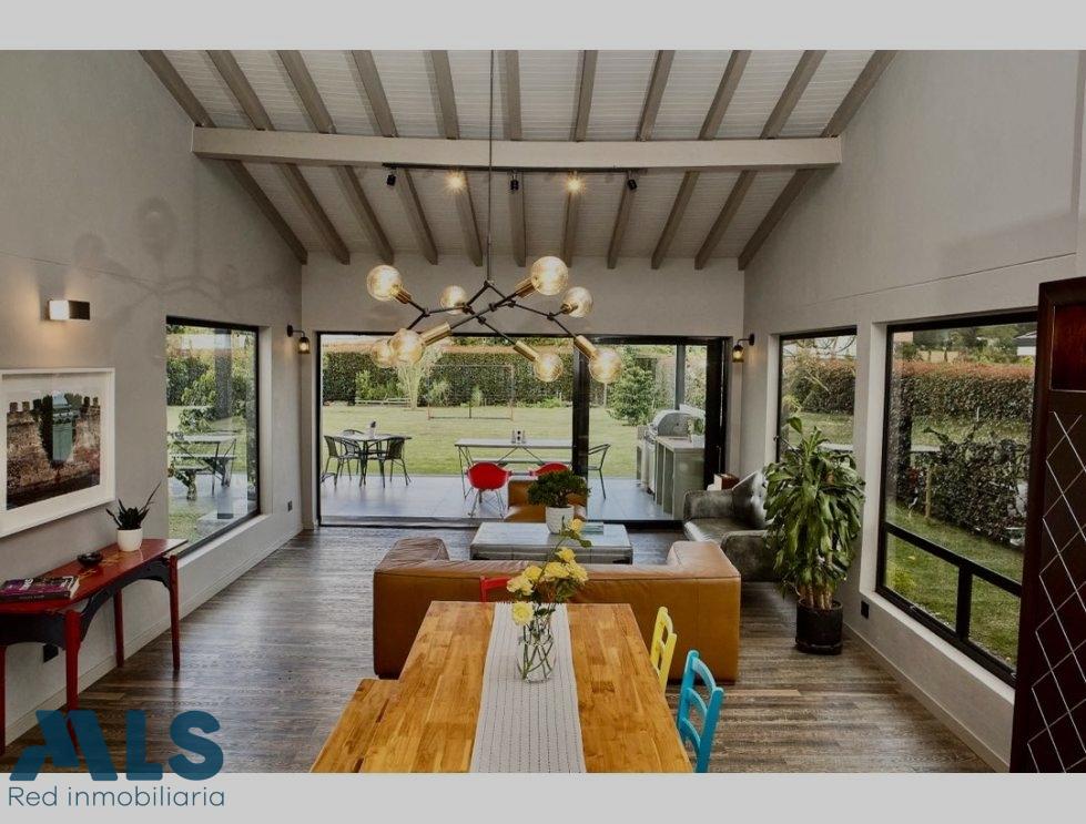Located on the main road in Llanogrande, within a gated community featuring a social hall, children's playground, and sports court, this single-level country home perfectly blends functionality, spaciousness, and a prime location. Its open-plan design and large windows that flood every corner with natural light create a welcoming and modern ambiance. It features three bedrooms and a library (with the possibility of adding a fourth), three full bathrooms and a powder room, a maid's quarters, an open kitchen, and a large living-dining room that connects to a covered terrace with a kitchenette and grill—perfect for enjoying time with family and friends. The completely flat lot, surrounded by expansive green areas with fruit trees, offers the perfect balance between nature, comfort, and country living, just minutes from everything Llanogrande has to offer.