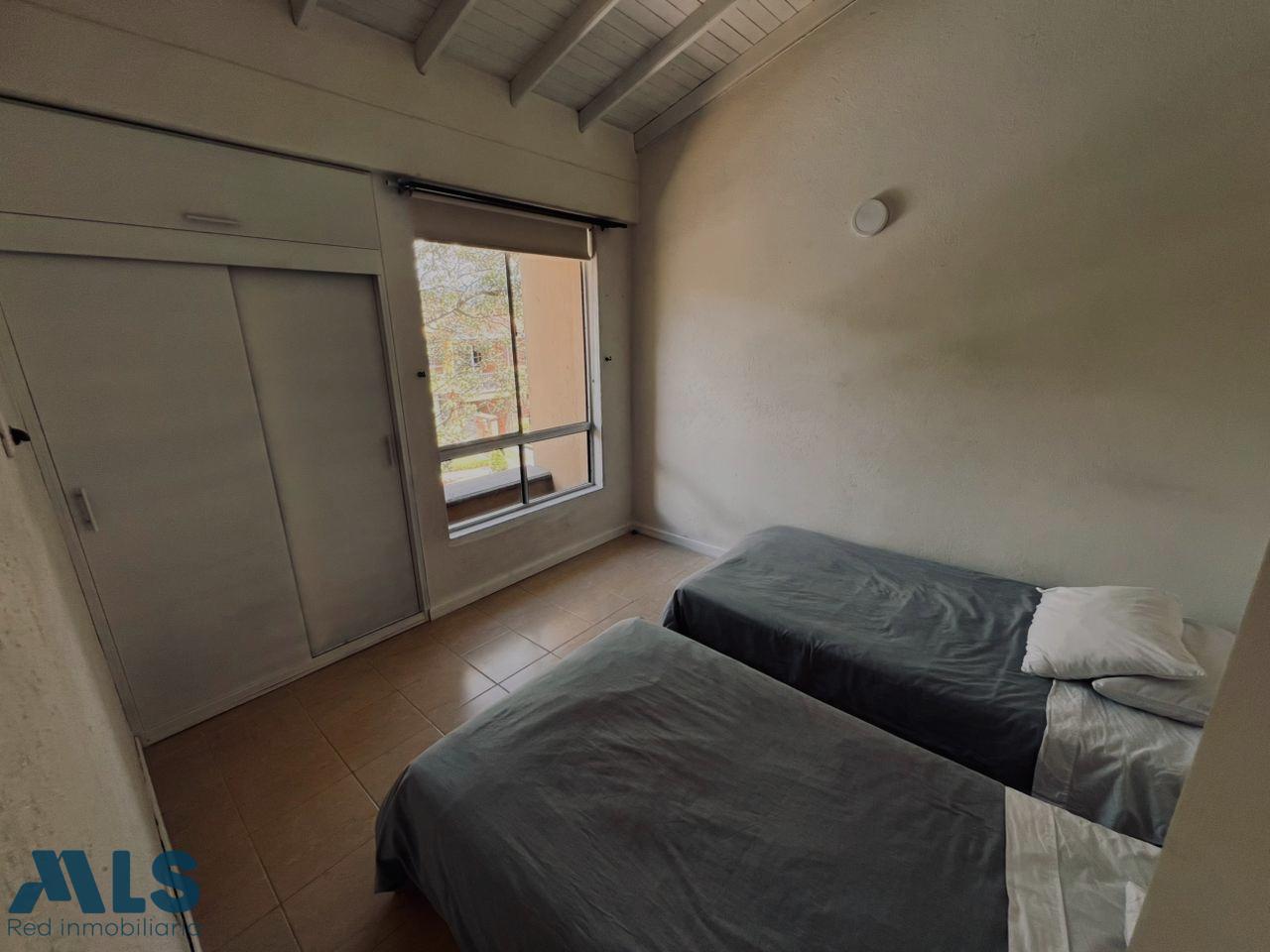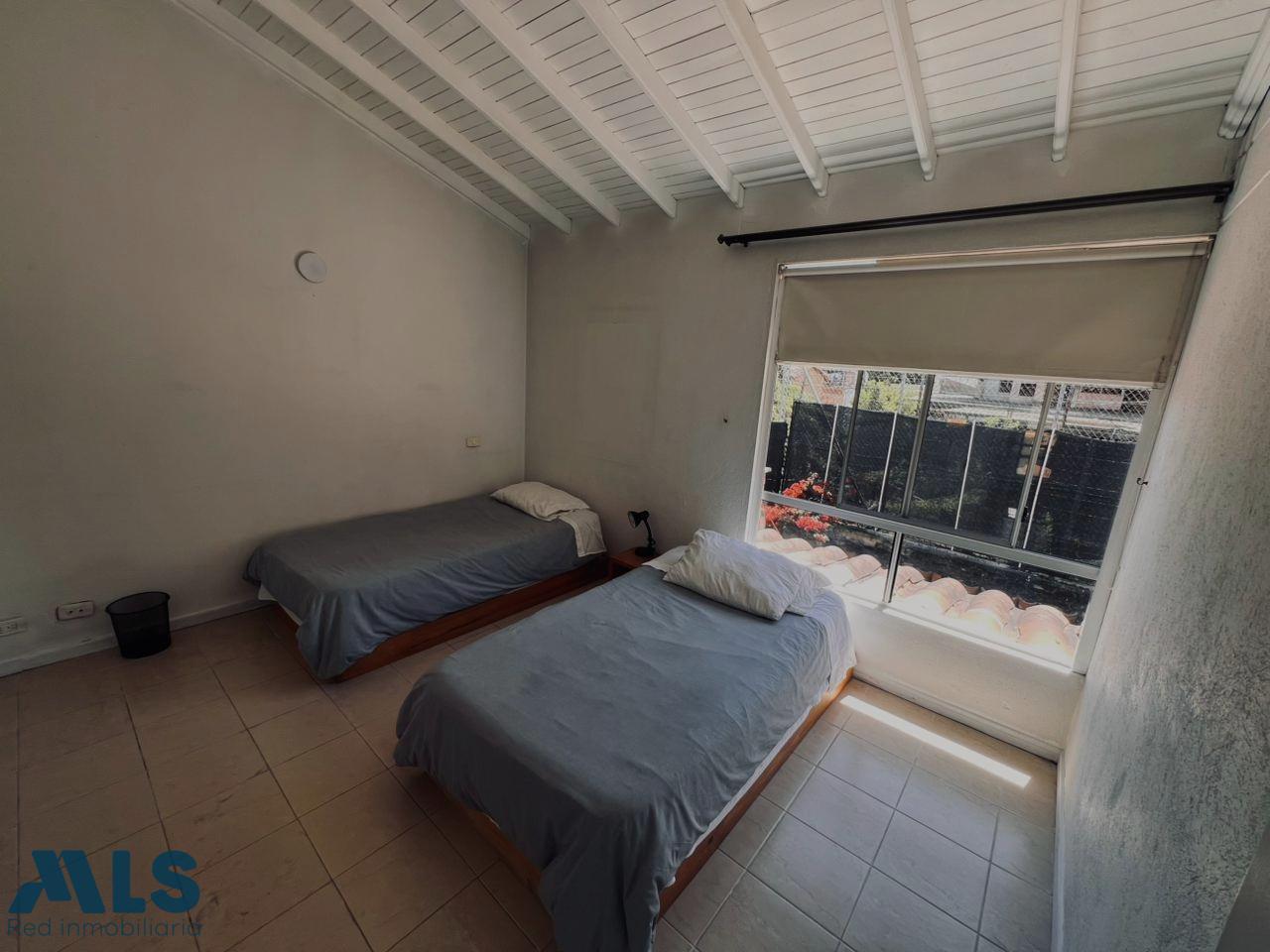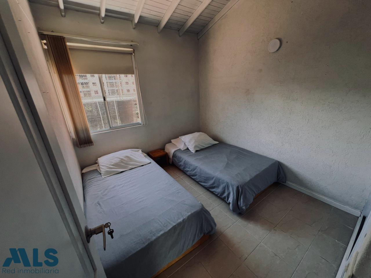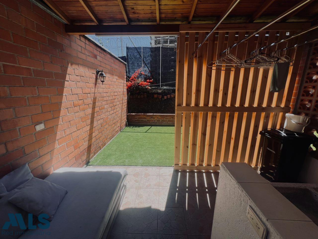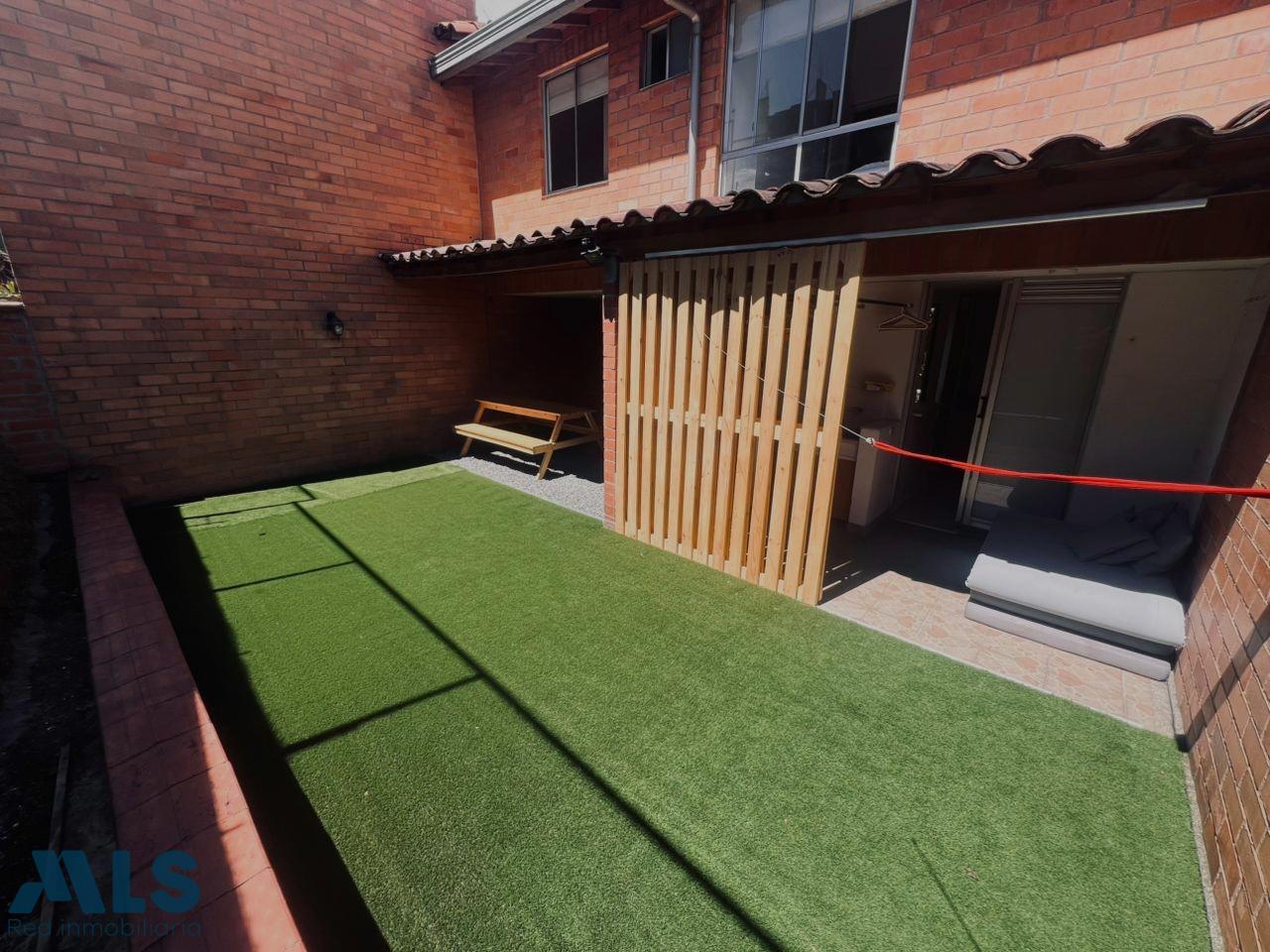 House in a gated community with 24-hour security, located in the Suramérica sector of La Estrella, Antioquia. The lot size is 128 m², and the constructed area (1st and 2nd floors) is 127 m² plus a 40 m² garden. The first floor features a living room, a guest bathroom with shower, a kitchen, a utility room, a large laundry room, a garden, an outdoor dining area, and a double tandem parking space. The second floor includes two bedrooms: one with a closet, one with a closet, one with a closet and a large balcony, and one (master) bedroom with a double closet and garden view. The property is part of a complete gated community.