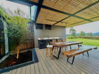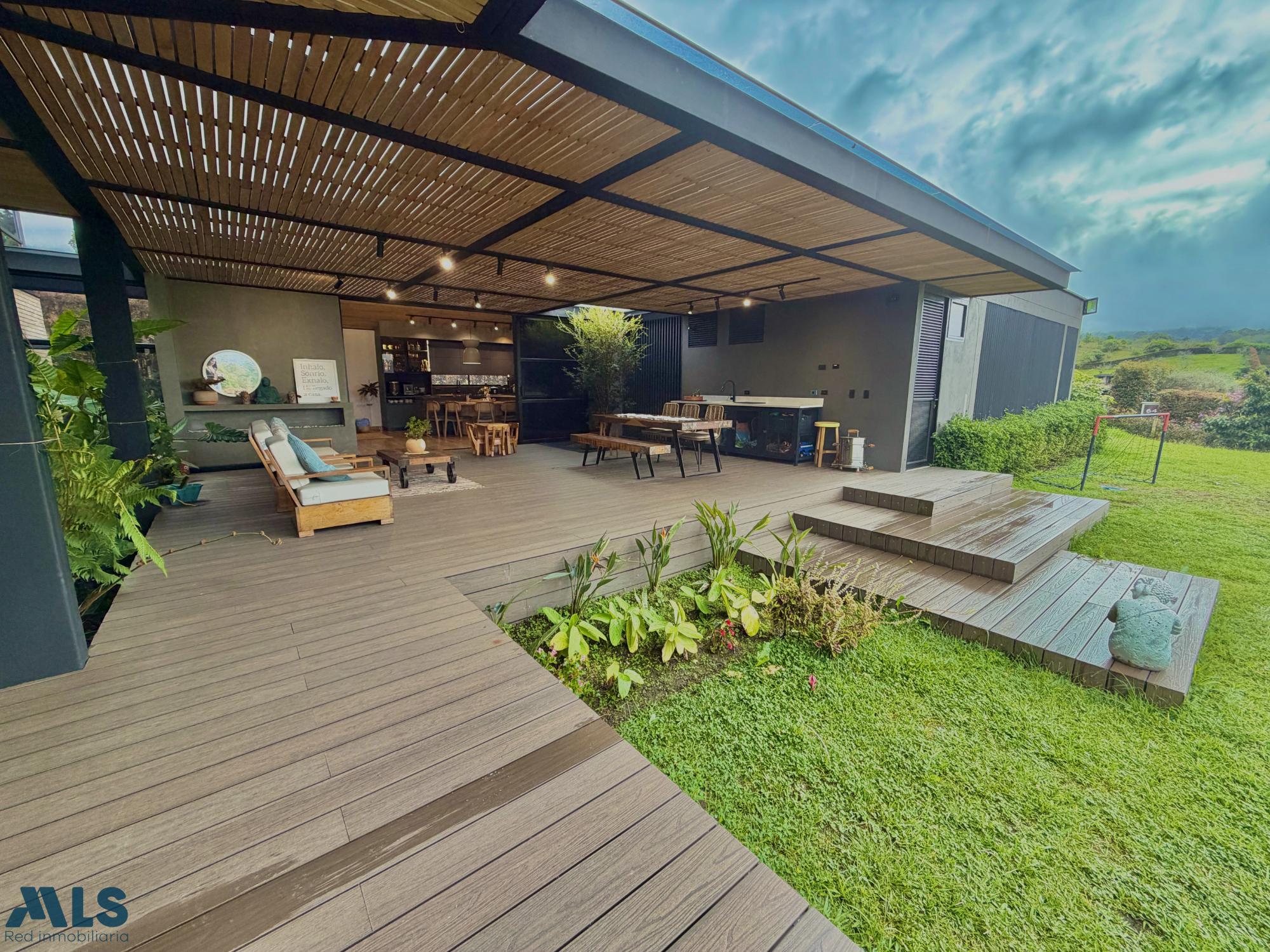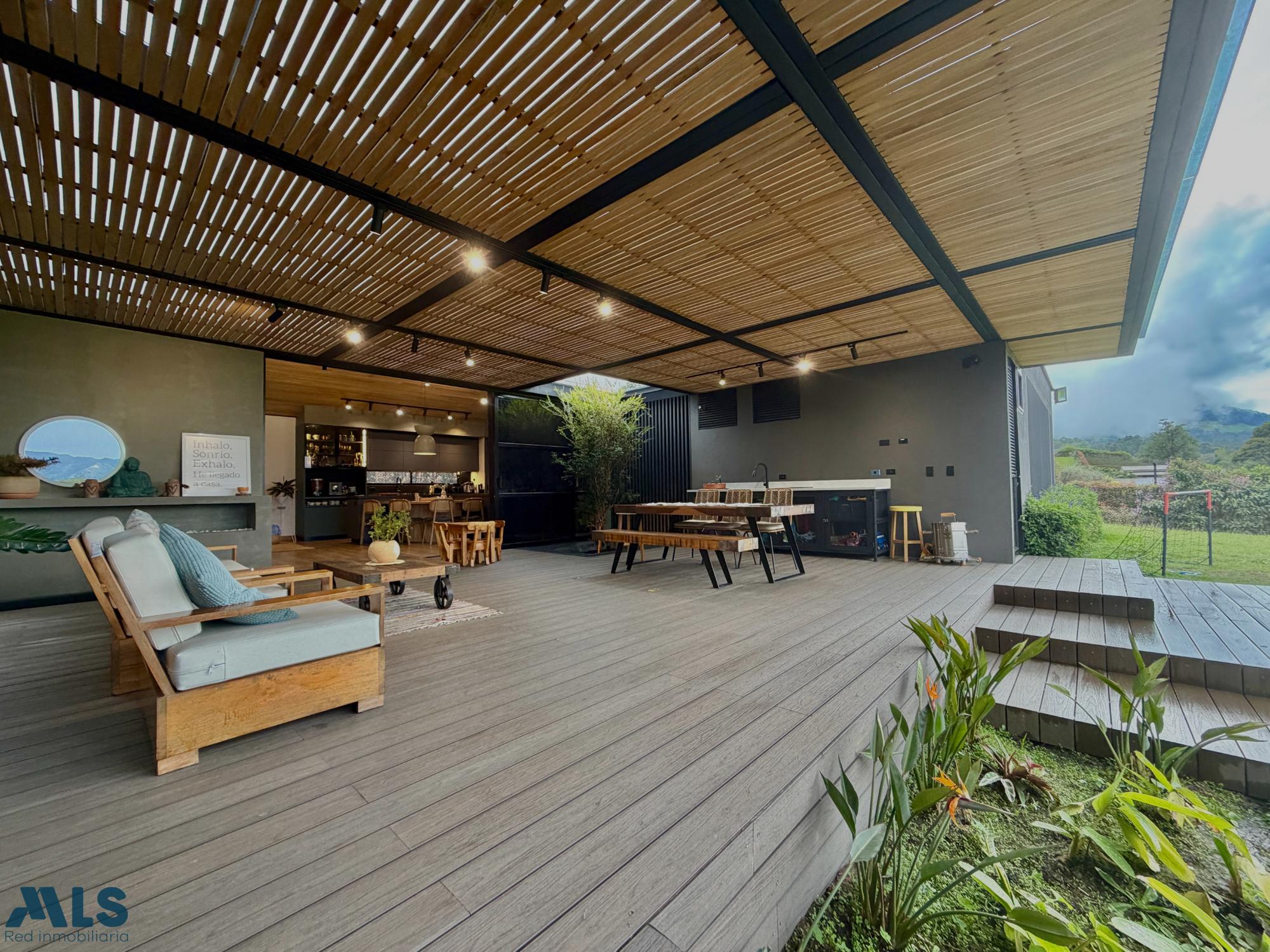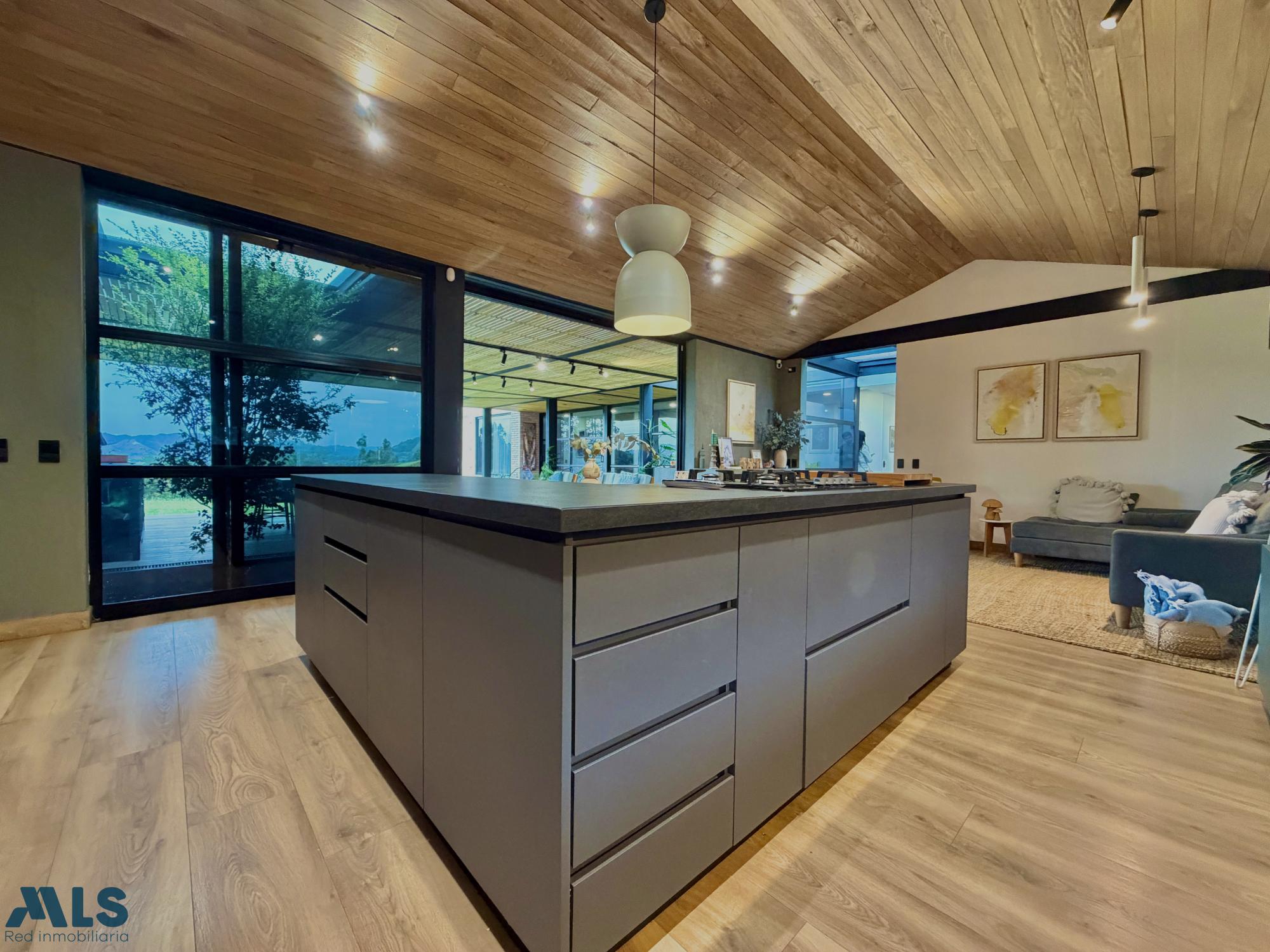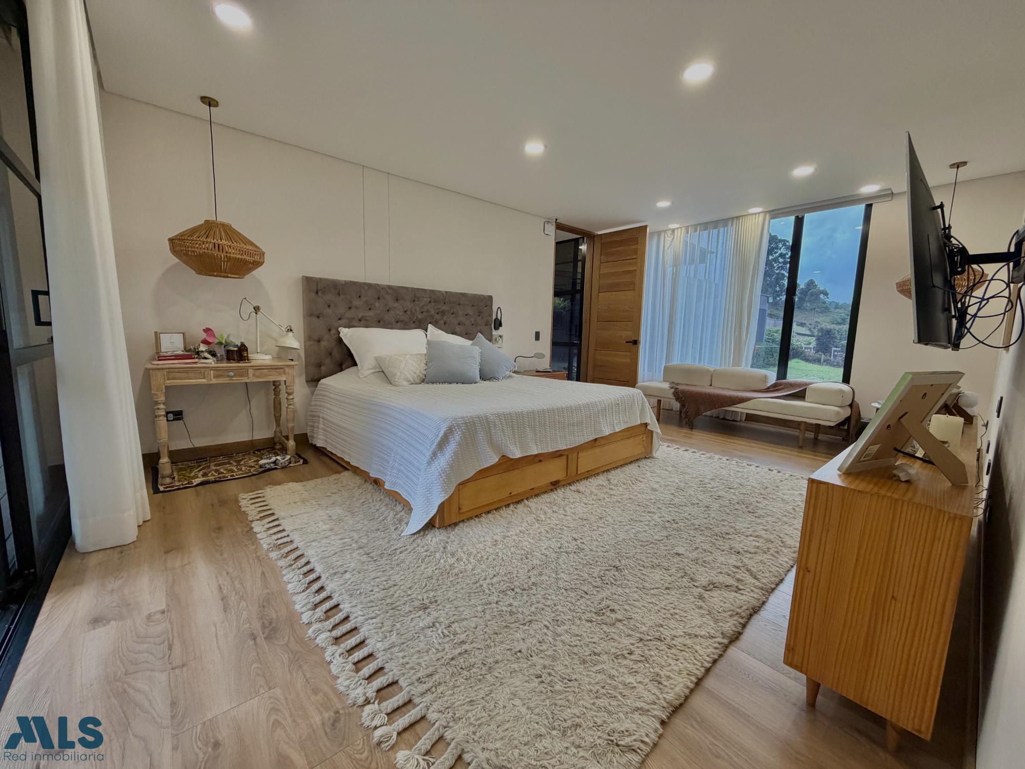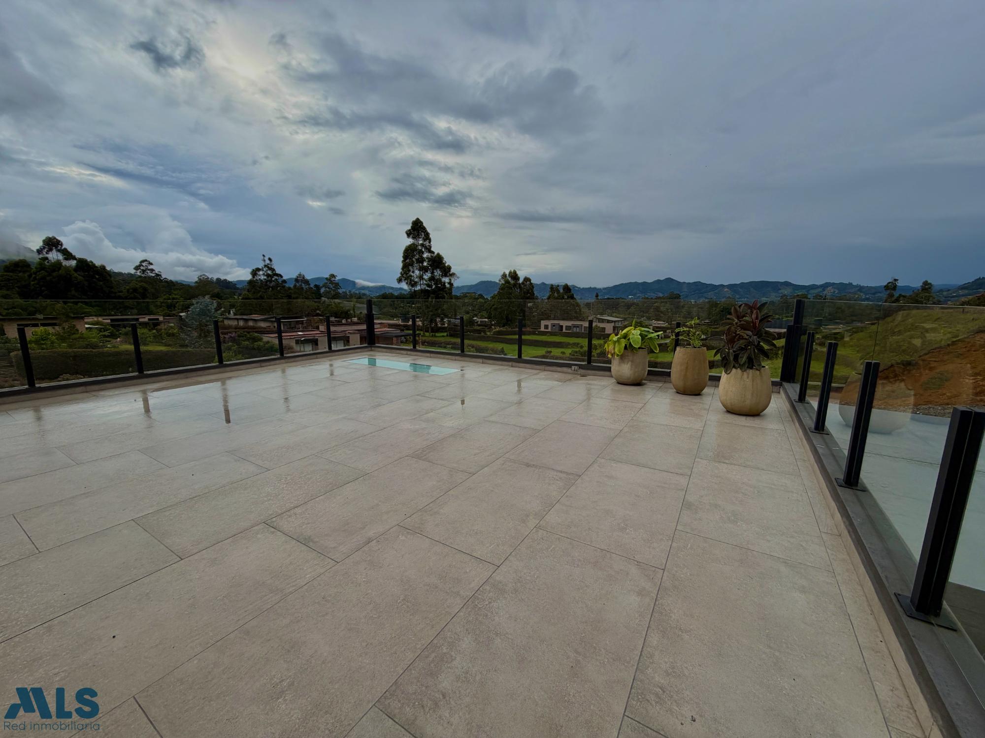 Spectacular modern house in La Ceja. The first level features three bedrooms, each with its own bathroom, walk-in closet, and private deck. The master bedroom includes a jacuzzi. There is also a family room with a full bathroom that could be converted into a fourth bedroom, an open-plan kitchen with an integrated dining area, a spacious terrace with a pergola, built-in cabinetry and a bathroom, a large green area, a separate laundry room, a maid's quarters with a bathroom, covered parking for two cars, and two storage rooms. On the second level, there is an office with access to a terrace, a hobby room with two flexible spaces, and a bathroom. The property has water tanks, security cameras, an alarm system, perimeter fencing, and an electric gate. A house designed for enjoying life with complete privacy, comfort, and style. Here you're not just buying a property: you're investing in quality of life, tranquility, and a home made to last.