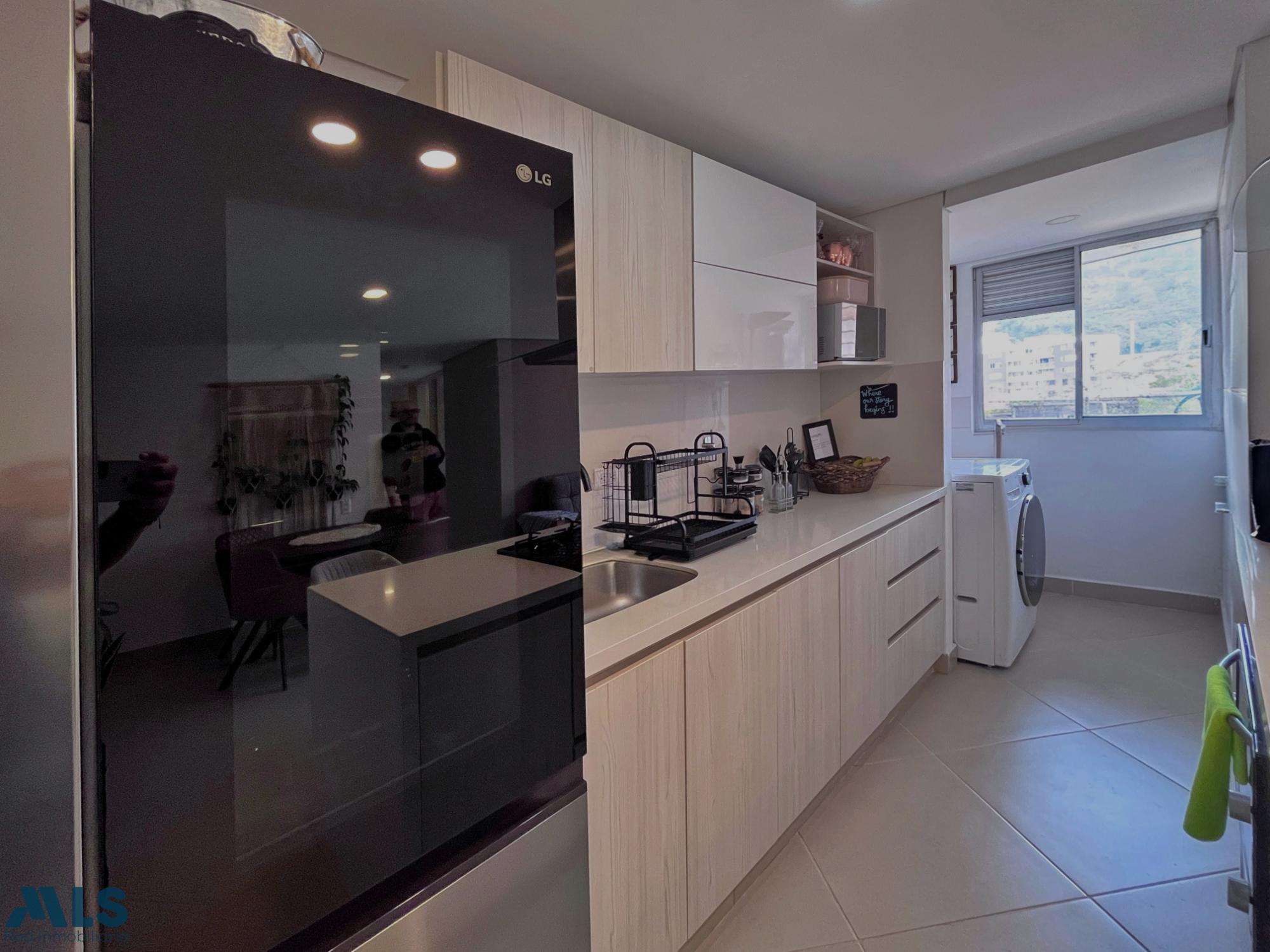 Apartamento piso alto, sin poniente, en Envigado zona plana, 72 M2 de área construida, sala comedor, 3 alcobas, la principal con vestier y baño, alcobas auxiliares con closet, baño completo social, cocina integral con red de gas, calentador, parqueadero sencillo y cuarto útil, parqueadero portería 24 horas, juegos, salón social, zonas verdes. Ubicado sobre la vía nueva al Parque Ecológico El Salado, cerca del Hospital Manuel Uribe Ángel y la Universidad de Envigado.