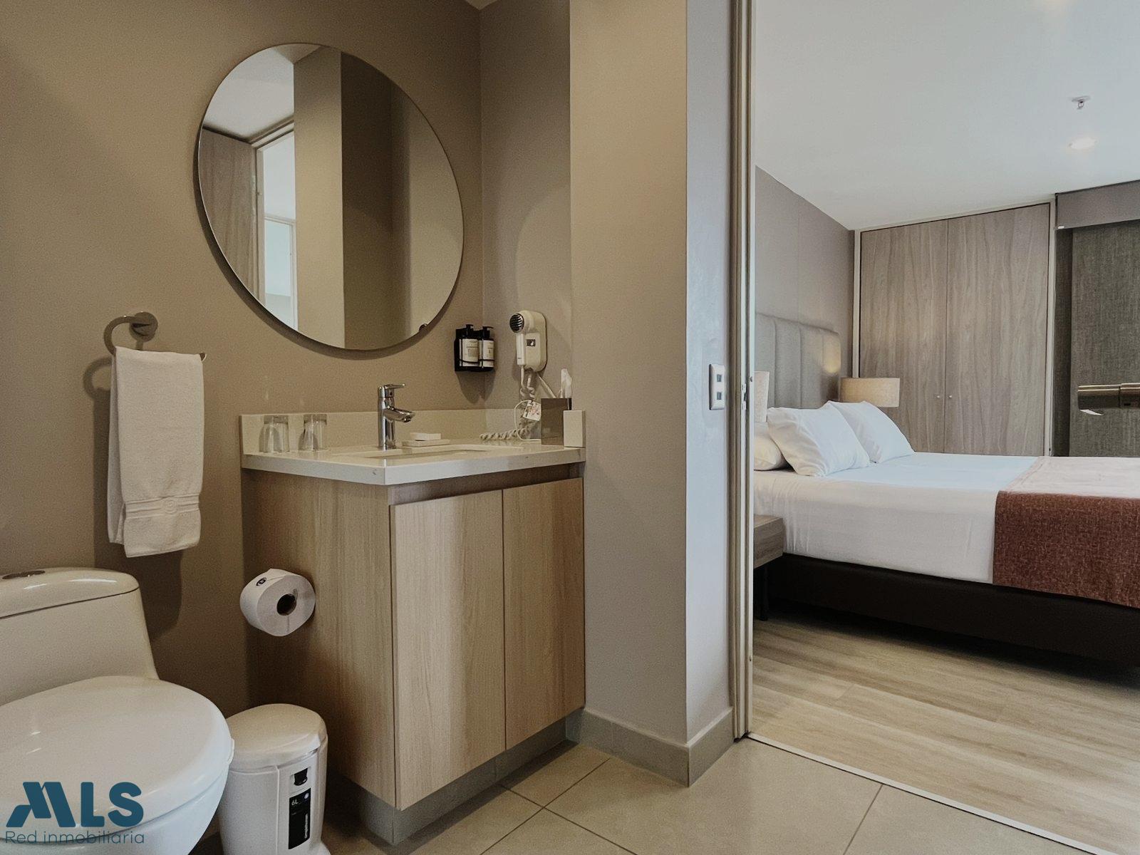 Apartasuite disponible para la venta en Milla de Oro, El Poblado, Medellín. Apartamento construido con 77m2 adecuado con 2 habitaciones cómodas con baño y vestier, espacio social integrado con conexión a la cocina integral que tiene barra americana y zona de lavandería. Incluye parqueadero privado cubierto. Esta exclusiva propiedad esta ubicada en edificio con gym, restaurante y zona humedad. Vive a unos pasos de Centro Comercial Santa Fe y Oviedo, cerca a EAFIT y con excelente acceso. Esta propiedad puede operarse directamente con operador hotelero, rentarse de manera tradicional y ocuparla. Contáctanos para agendar tu visita.
