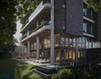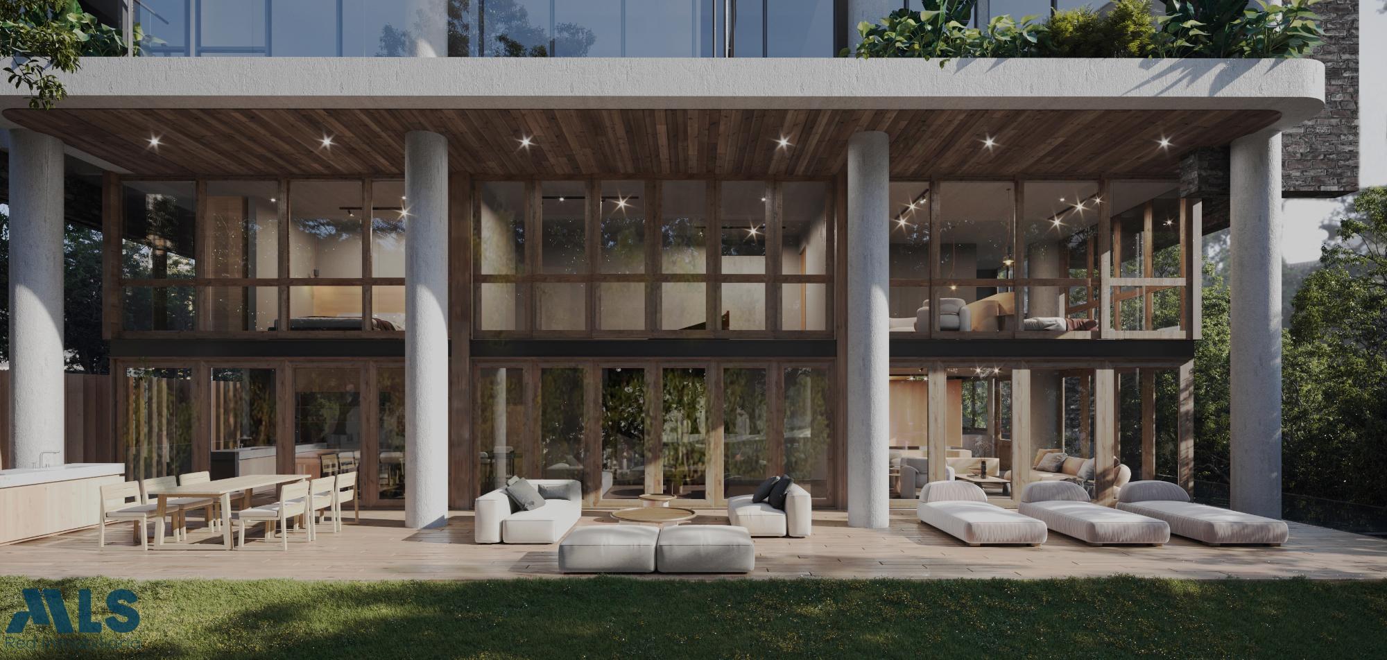 Exclusive 405 m2 apartment in El Poblado on the first floor with a deck and private lawn. Located in El Poblado, this beautiful house-style apartment has an interior area of 286.57 m2 plus a 1 m2 terrace and 197.48 m2 private lawn. It is delivered in shell condition so the owner can finish it to their liking with luxury finishes. It has two floors with double-height ceilings of 6 meters; elevator access on both floors. It features three bedrooms with en-suite bathrooms (possibility of a fourth in the TV room), a study, a maid's quarters with bathroom, a guest bathroom, a living-dining room and kitchen, a spacious and well-ventilated laundry area, a double-height terrace and deck with a BBQ, and a private lawn with a spectacular garden where a private pool can be built. It has three covered parking spaces with independent entrances and direct access to the apartment, and three storage rooms. The building is very exclusive, with only 13 apartments, 24/7 security, and a lobby.