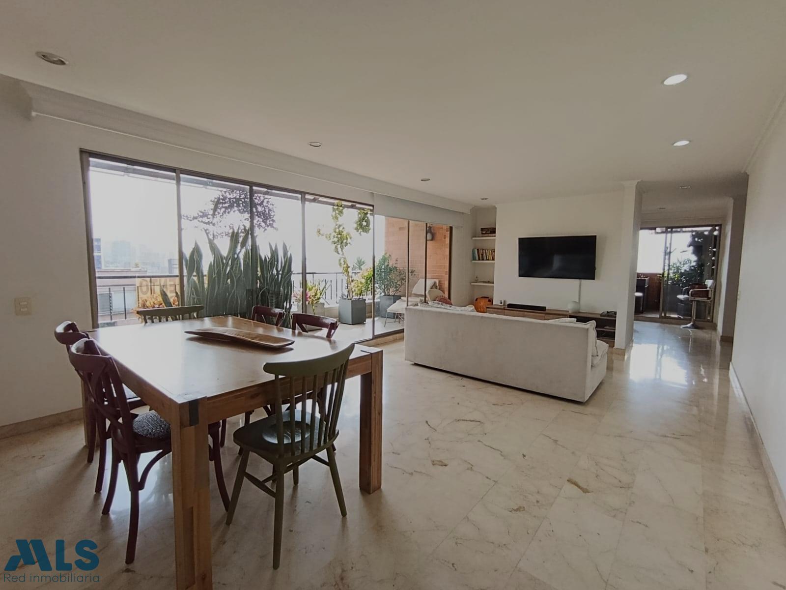 Apartamento remodelado en Lalinde,es un piso 10,tiene 121mt mas 35 de terraza,5 balcones con vista espectacular,sector muy tranquilo,son 3 alcobas 2 de ellas con baño privado,estudio,parqueadero doble lineal y cuarto util,la porteria es 24 horas Predial anual 6.350.000 y administracion 730.000
