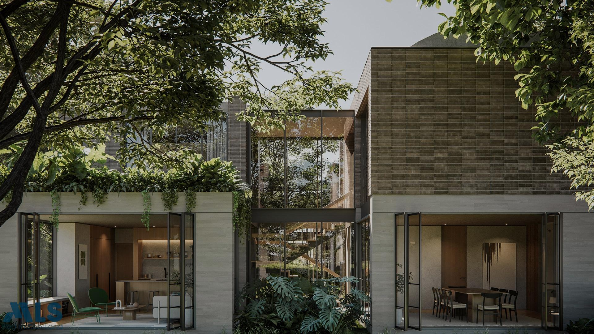 House in a gated community for transfer of rights in Alto de las Palmas. This modern and unique house features a dome that adds a special touch and an interior garden. The first level includes a living room, dining room, open kitchen, laundry area, linen closet, and maid's quarters. It also has two parking spaces and a storage room. The second level has three bedrooms, each with its own bathroom; the master bedroom includes a walk-in closet. Located in Alto de las Palmas, with access from both Las Palmas and El Escobero. Close to Mall Indiana, Viva Palmas, and Lemont, and 25 minutes from the airport and Medellín. Approximate delivery is June 2026. The house will be delivered in shell condition so the buyer can finish it to their liking. *Reference images are renderings.