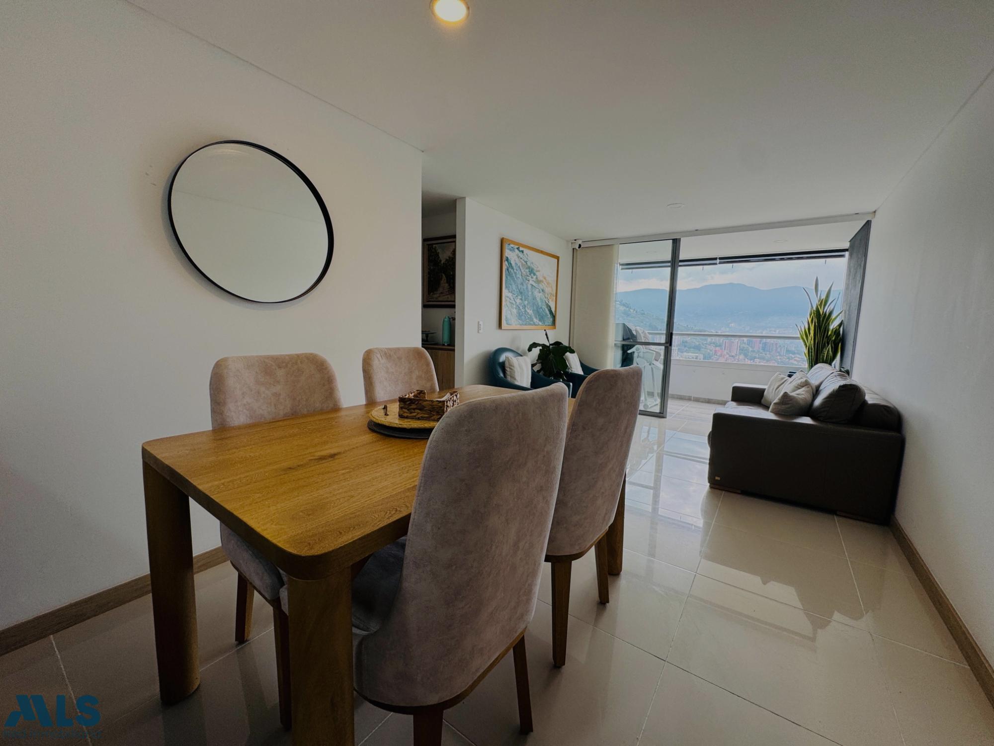 Apartment for sale located in Envigado, Chinguí, Camino Verde (upper section). 84 square meters, 3 bedrooms, 2 bathrooms, 2 balconies (one off the living room and one off the master bedroom), parking space, and storage room. High floor with beautiful city views. Common areas include: swimming pool for adults and children, Turkish bath, social room, soccer field, meditation kiosk, pet area, children's playground, gym, coworking space, juice room, daycare, theater, and convenience store. Price: $710,000,000 COP