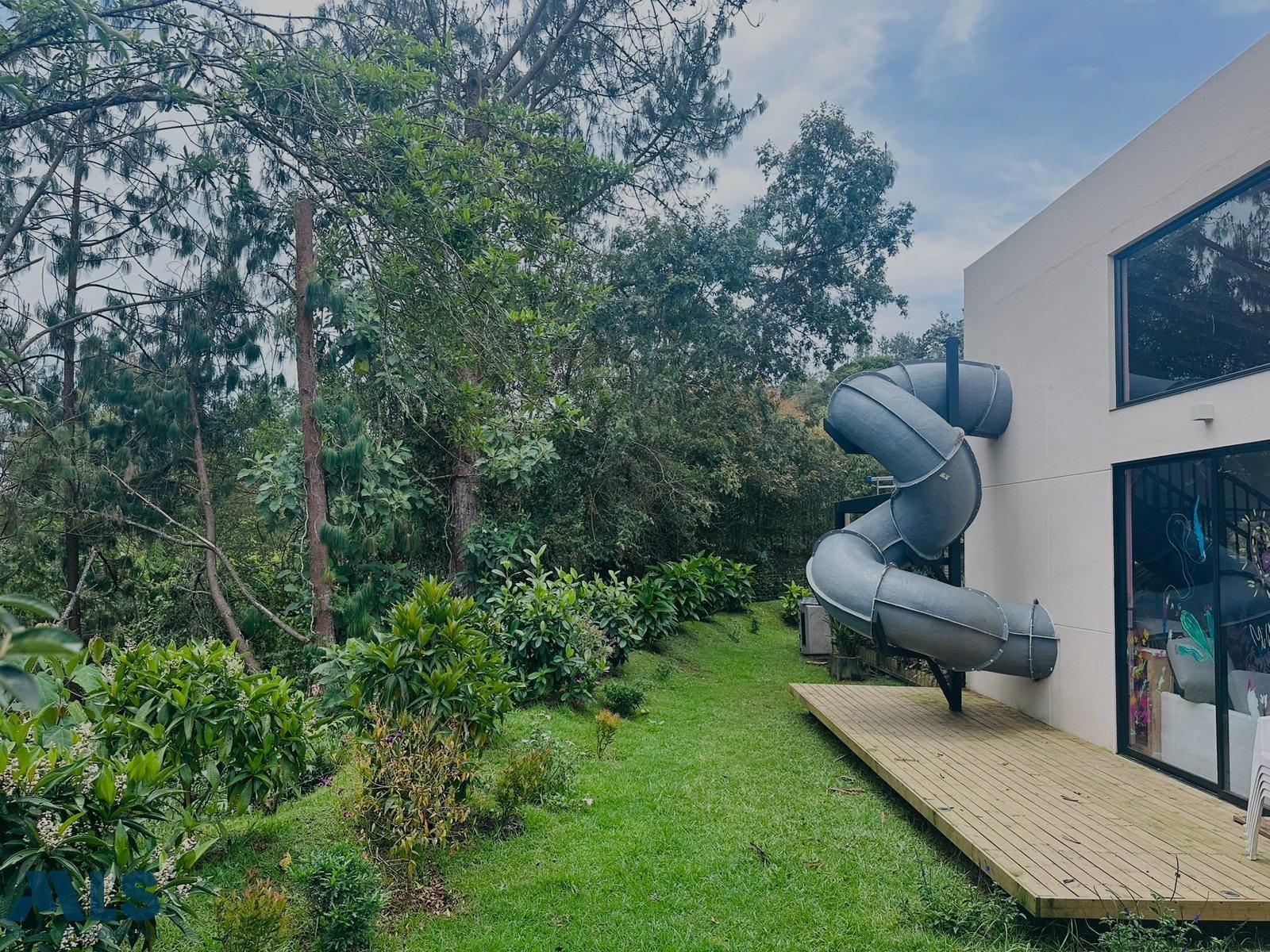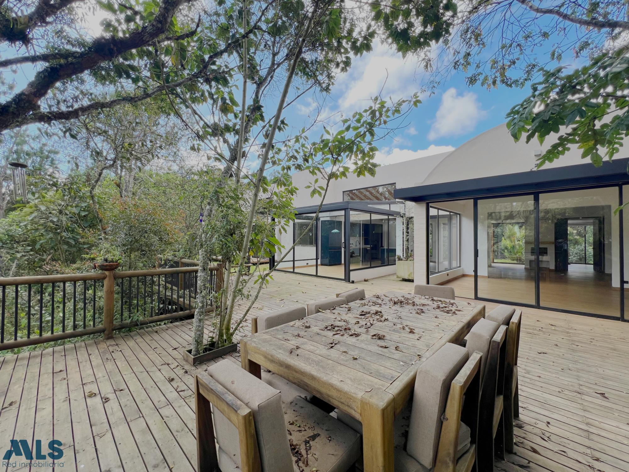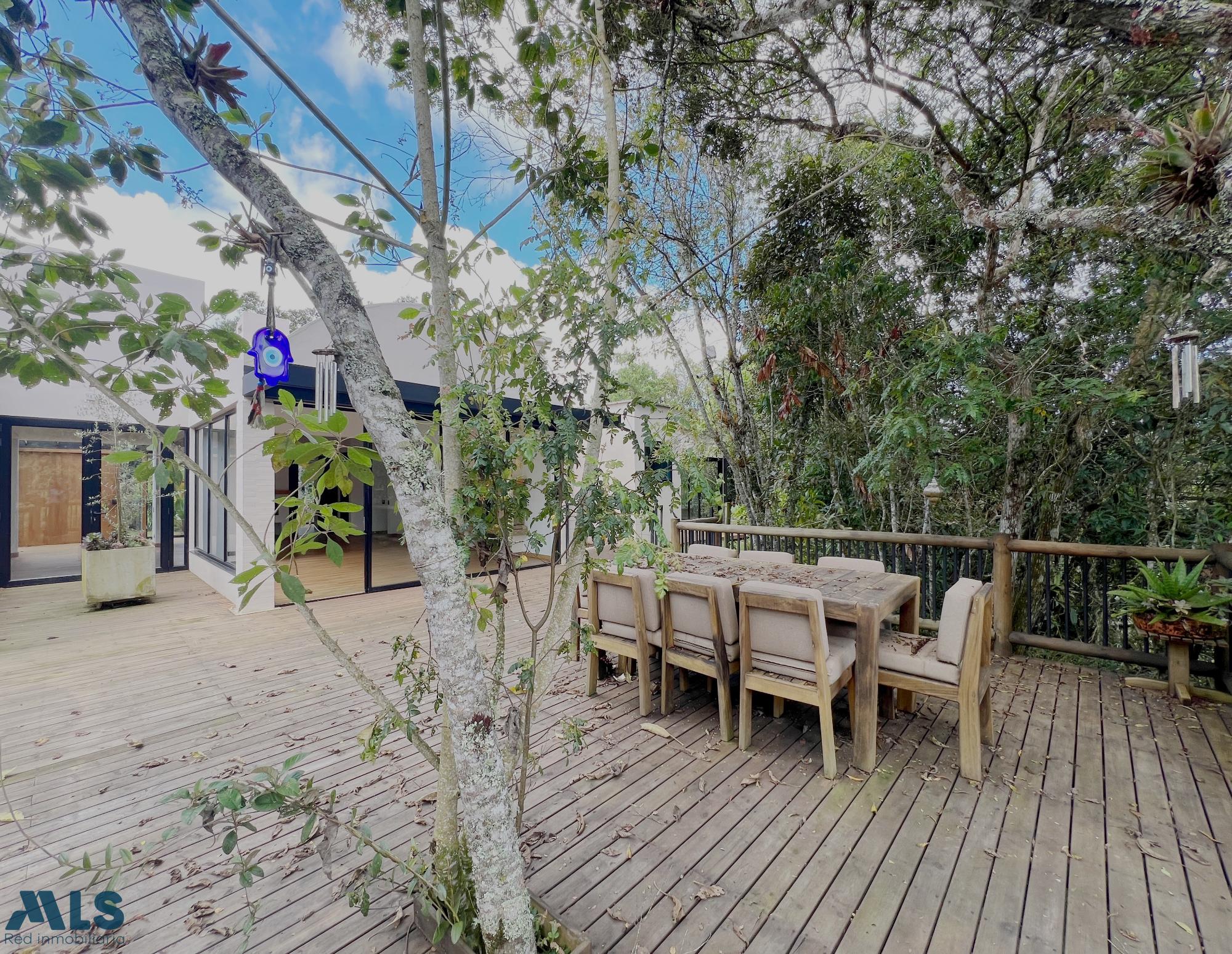House of 406 square meters built on a lot of [missing information - likely a specific size or size]. It has 3 bedrooms with en-suite bathrooms, a study, separate living and dining rooms, a guest bathroom, a kitchen, a maid's room and bathroom, and a large deck. There is also a separate office in a small wooden cabin surrounded by forest. The lot is wooded and has direct access to a stream. Located in a gated community in the Piccolo area, just 25 minutes from Medellín. A little corner of paradise in the middle of the forest, very close to Medellín.