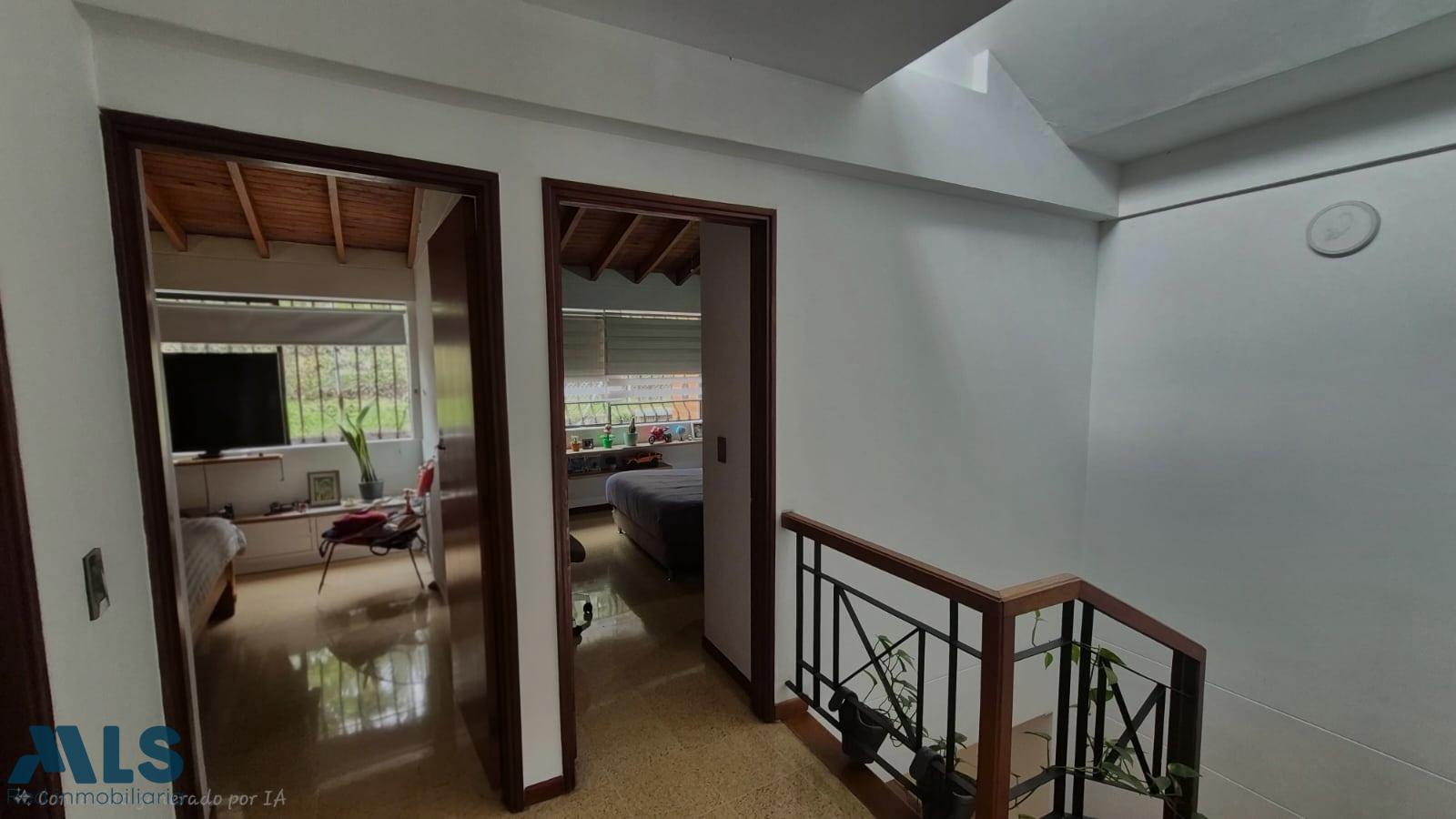 Great opportunity! Beautiful house for sale in a quiet area of Envigado, in a gated community with an excellent location, direct access to El Escobero, minutes from San Lucas, and a few blocks from Avenida Intermedia. This two-story house features 4 bedrooms, 2 parallel parking spaces, a living/dining room, an interior patio, a maid's quarters with bathroom, a study, and access to green areas, sports courts, a social hall, and visitor parking.