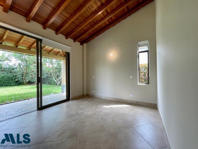 Esta es una casa donde podrás disfrutar de grandiosos y cálidos espacios, con la practicidad de tenerlo todo en un solo nivel, la tranquilidad de estar en unidad, cercana a centros comerciales, mala, iglesia, aeropuerto. Tan solo con 3 años de construcción, 4 habitaciones en el primer nivel, principal con baño privado y vestier, auxiliares comparten baño, salón comedor con ventanal de pared a pared que te lleva a corredor y a zona verde, baño social, cocina abierta y zona de ropa independiente, cuenta con un estudio o quinta habitación, en un segundo nivel. Esta casa tiene mucha proyección, ya que permite reformar y ampliar en el segundo piso. Porton con motor, parqueadero descubierto para tres vehículos.