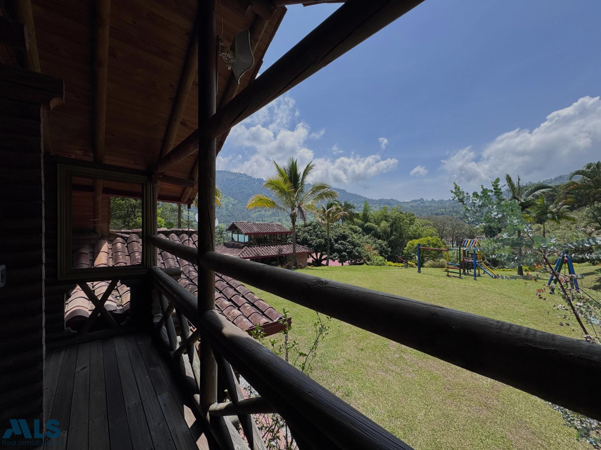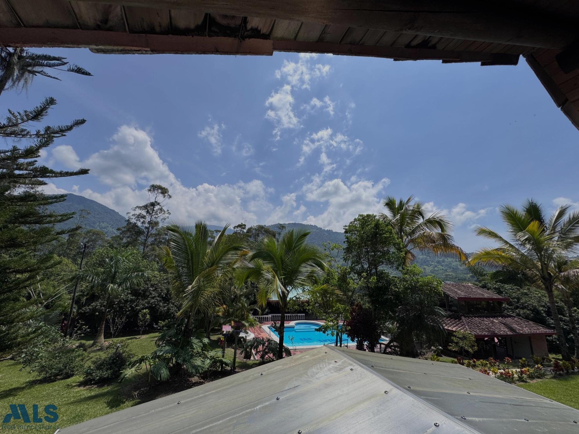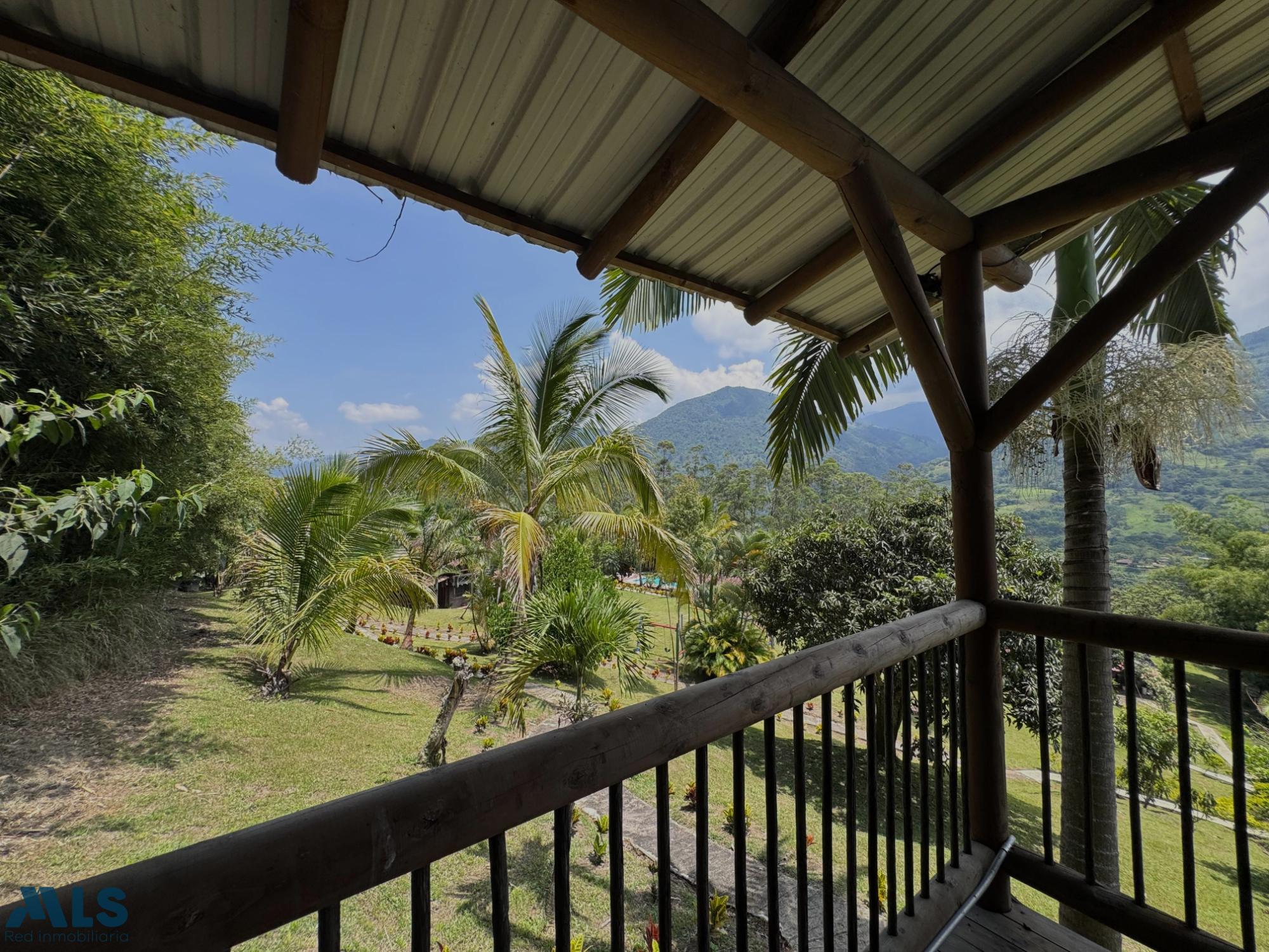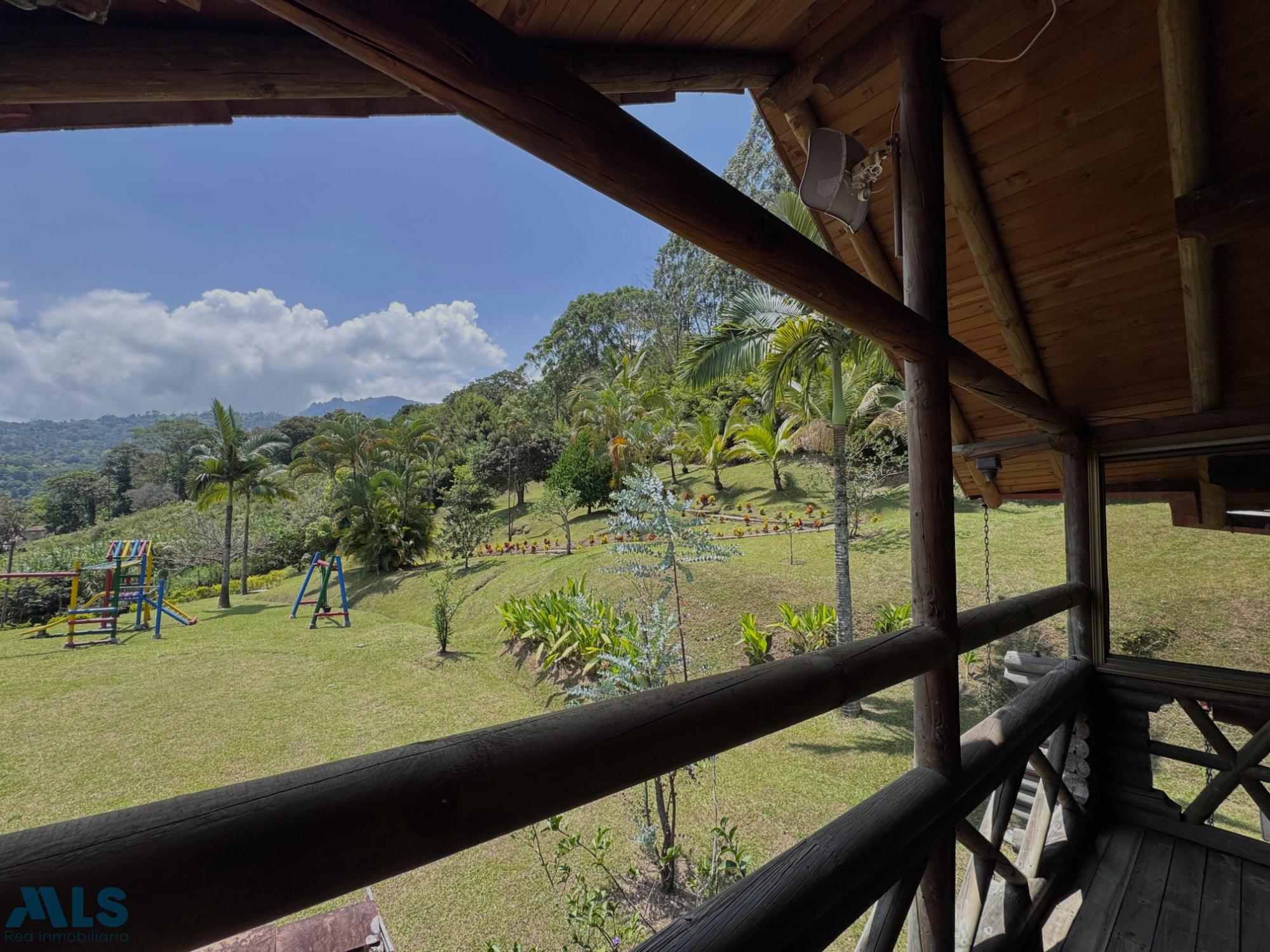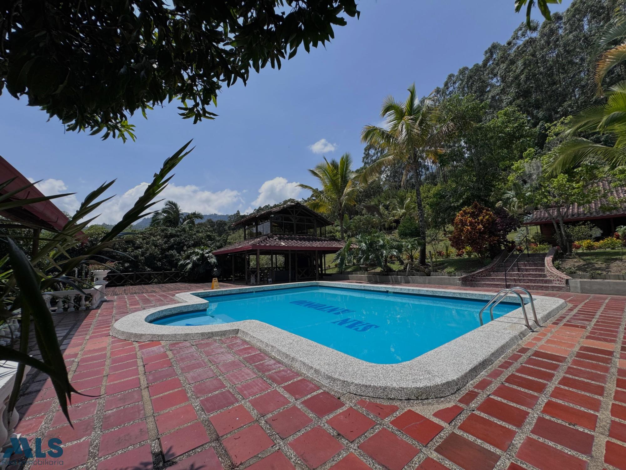 GM - FARM FOR SALE IN VEREDA EL CINCO, FREDONIA, ANTIOQUIA. Two-story farm with a constructed area of 255.35 m2 and a lot size of 9,600 m2. The house features 4 bedrooms, 3 with en-suite bathrooms, a full guest bathroom, a spacious living and dining room, a study, a balcony, a water heater, a laundry area, a patio, a garden, a terrace, 2 covered parking spaces, and beautiful natural views. The property includes security, a children's playground, a swimming pool, green areas, and a pet area. It has security cameras, was remodeled in 2018, and includes a caretaker's house and 3 kiosks. Located in a rural residential area, it has access to both community and spring water (4 reserve tanks), is 10 minutes from the town center, and is close to a main road, with convenient access and public transportation nearby.