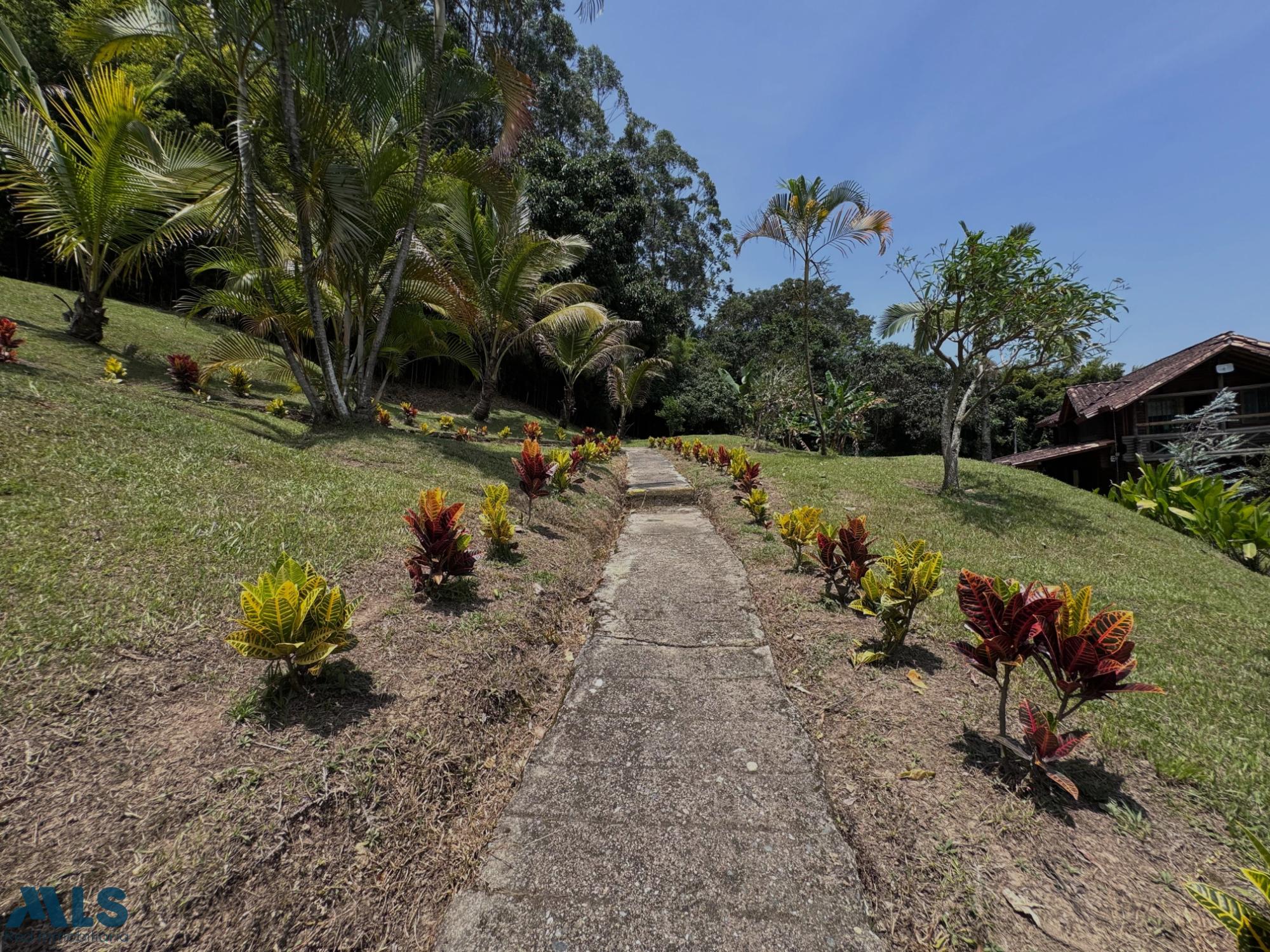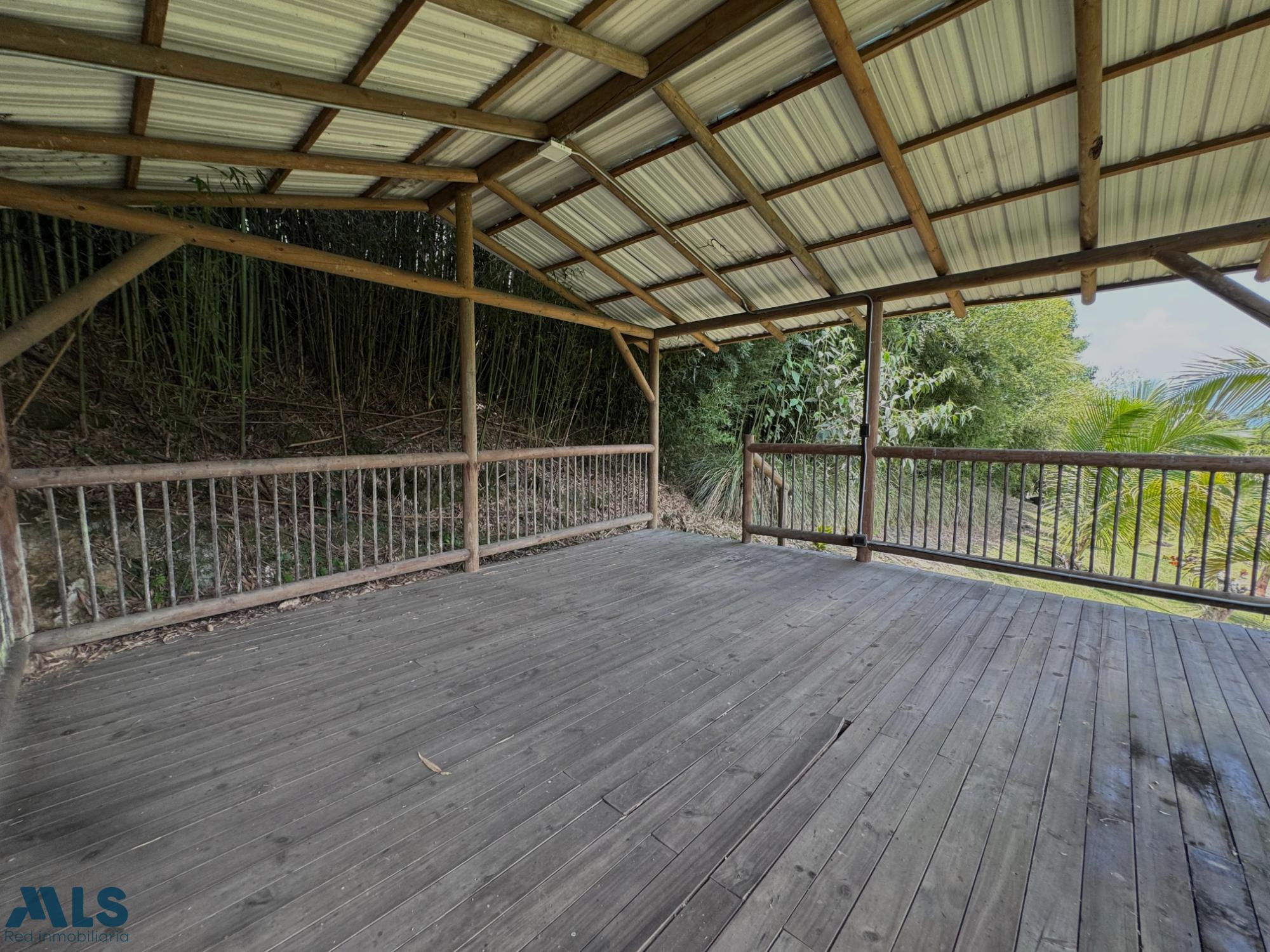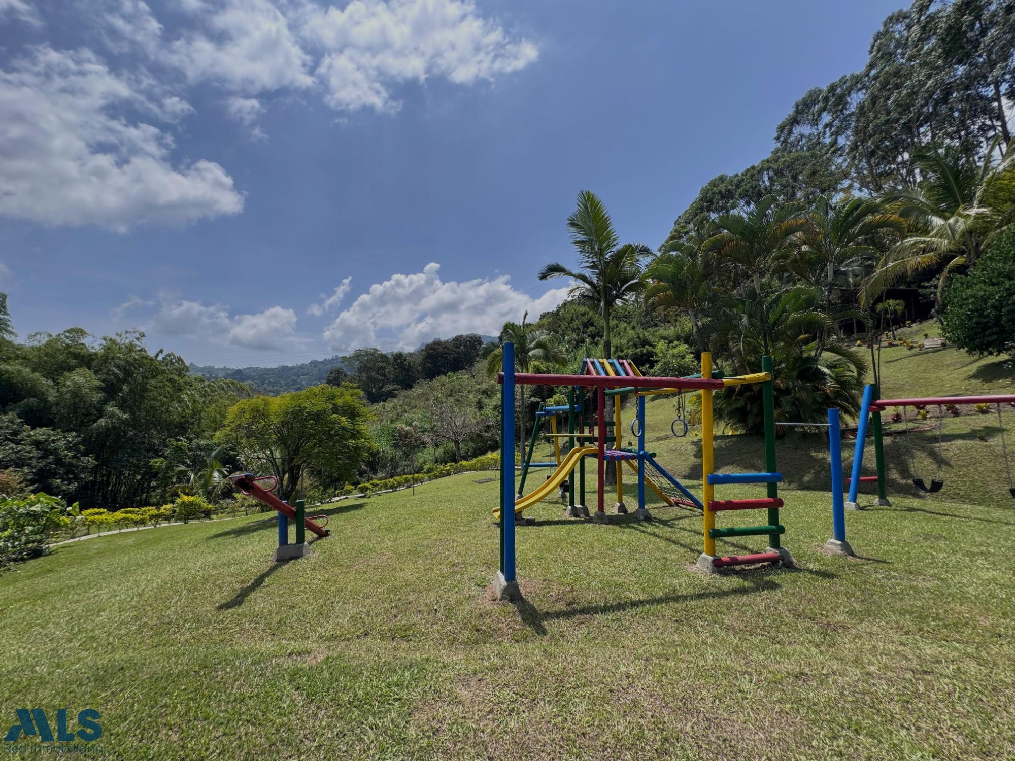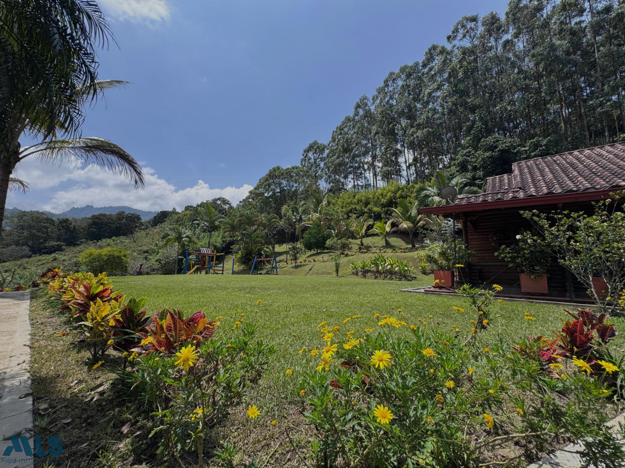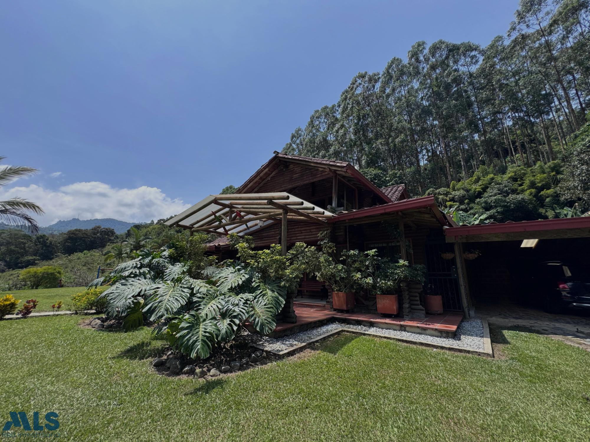 GM - FARM FOR SALE IN VEREDA EL CINCO, FREDONIA, ANTIOQUIA. Two-story farm with a constructed area of 255.35 m2 and a lot size of 9,600 m2. The house features 4 bedrooms, 3 with en-suite bathrooms, a full guest bathroom, a spacious living and dining room, a study, a balcony, a water heater, a laundry area, a patio, a garden, a terrace, 2 covered parking spaces, and beautiful natural views. The property includes security, a children's playground, a swimming pool, green areas, and a pet area. It has security cameras, was remodeled in 2018, and includes a caretaker's house and 3 kiosks. Located in a rural residential area, it has access to both community and spring water (4 reserve tanks), is 10 minutes from the town center, and is close to a main road, with convenient access and public transportation nearby.