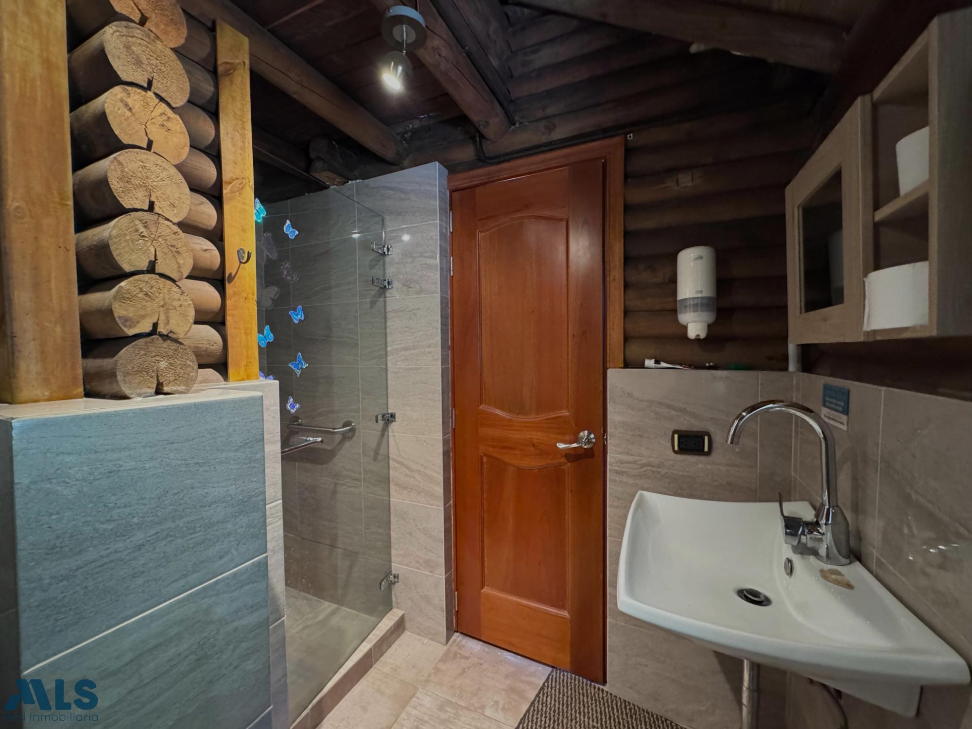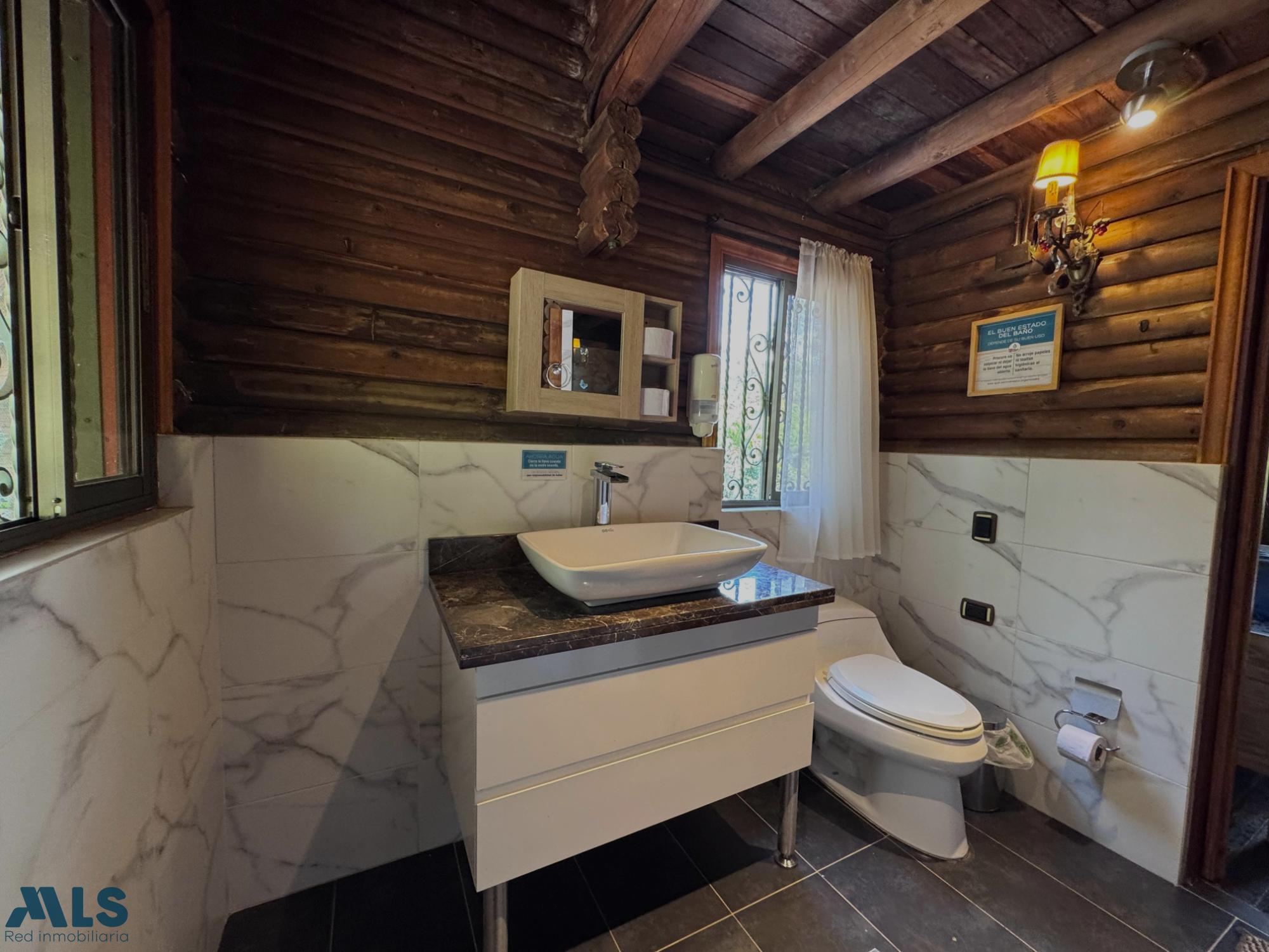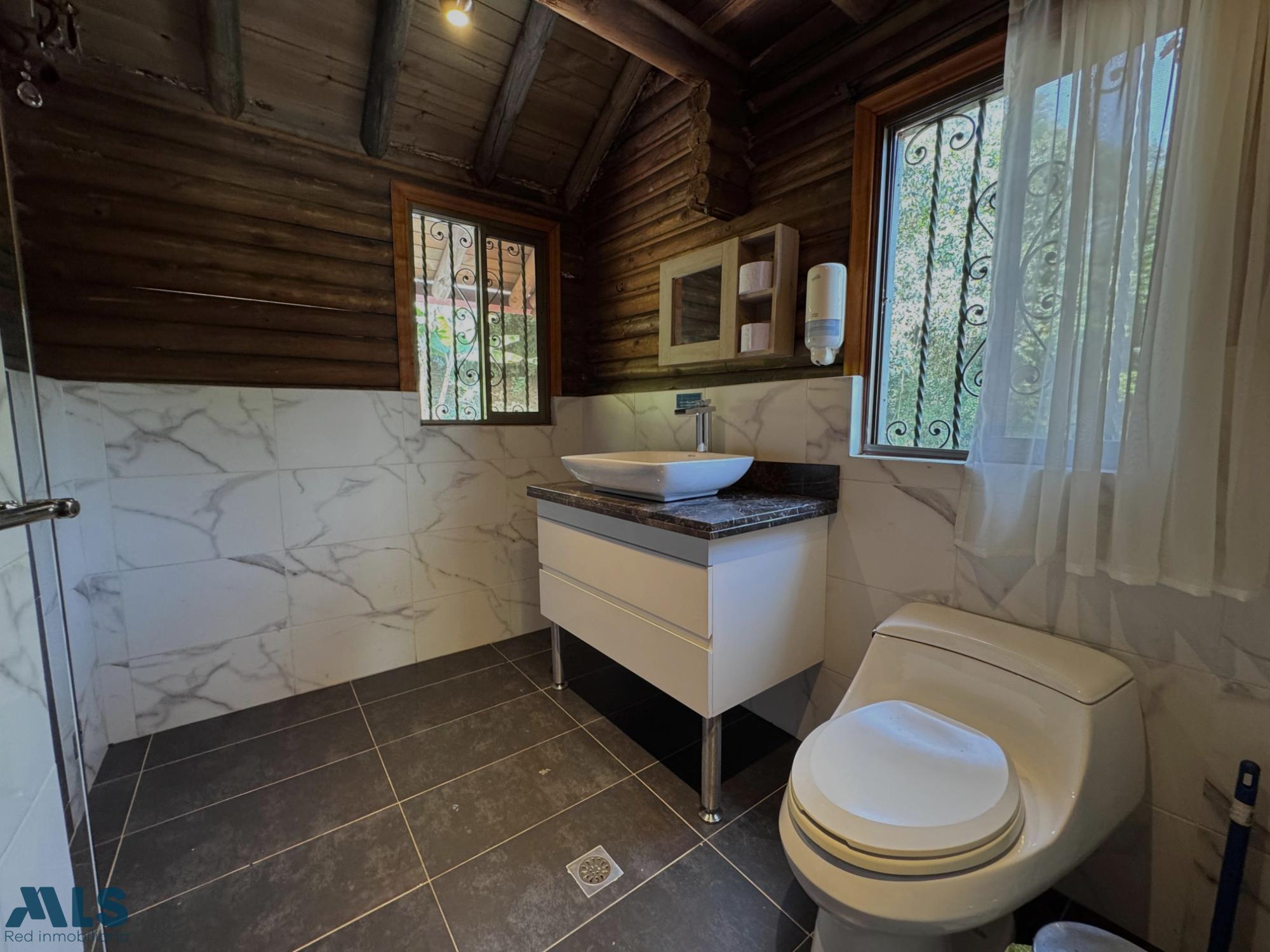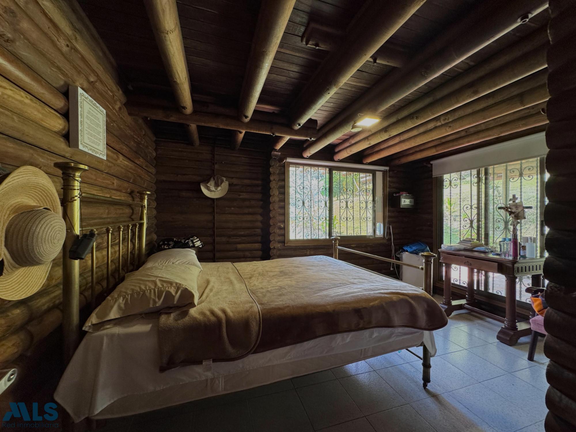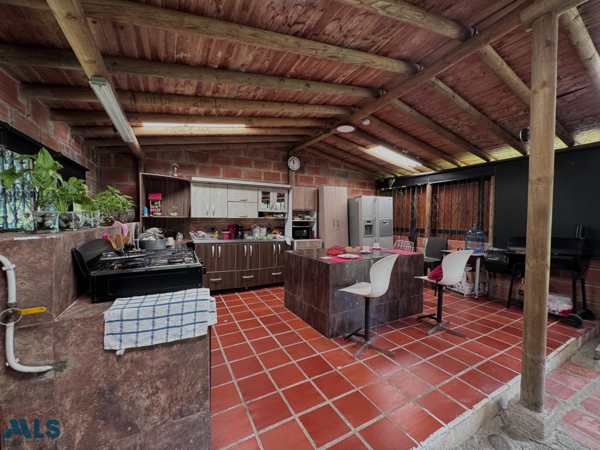 GM - FARM FOR SALE IN VEREDA EL CINCO, FREDONIA, ANTIOQUIA. Two-story farm with a constructed area of 255.35 m2 and a lot size of 9,600 m2. The house features 4 bedrooms, 3 with en-suite bathrooms, a full guest bathroom, a spacious living and dining room, a study, a balcony, a water heater, a laundry area, a patio, a garden, a terrace, 2 covered parking spaces, and beautiful natural views. The property includes security, a children's playground, a swimming pool, green areas, and a pet area. It has security cameras, was remodeled in 2018, and includes a caretaker's house and 3 kiosks. Located in a rural residential area, it has access to both community and spring water (4 reserve tanks), is 10 minutes from the town center, and is close to a main road, with convenient access and public transportation nearby.