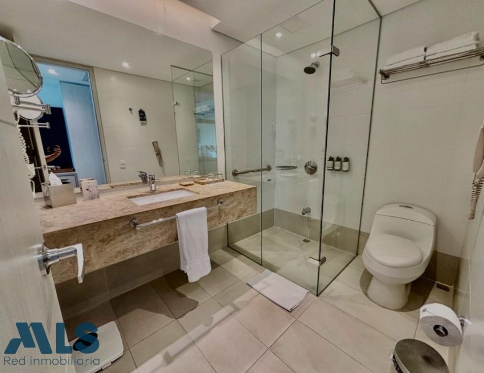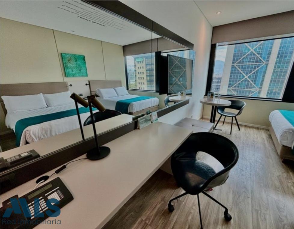 Centrally located suite in El Poblado, close to shopping centers and main avenues, situated on flat land with approximately 70% occupancy. The room features two beds, a bathroom, and a closet, all with top-of-the-line amenities and stunning views. The hotel boasts a rooftop bar, swimming pool, gym, and restaurant, and is managed by the Hotel Estelar chain. There are no administration fees, as the operator charges a management fee. What are you waiting for to invest in this strategically located hotel? Contact us!