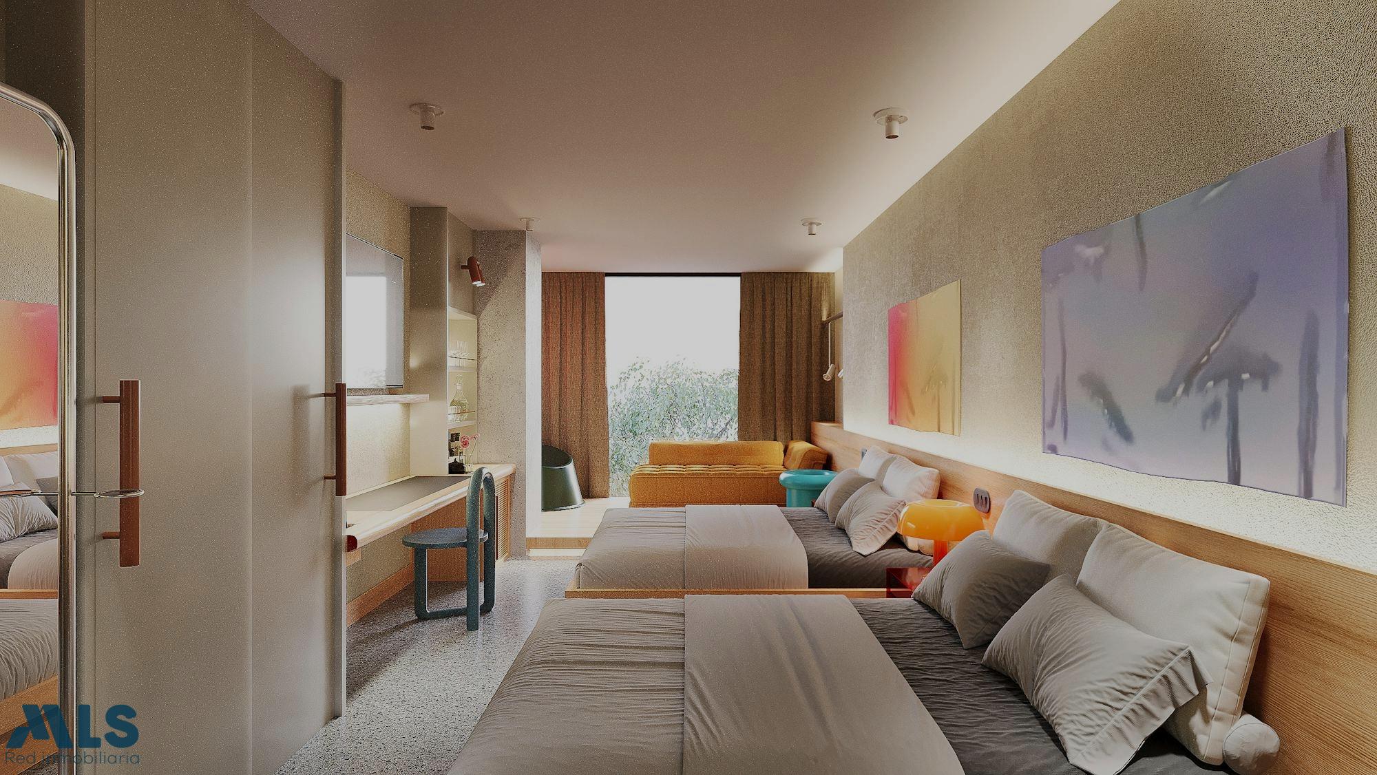 Assignment of rights. 33 m² hotel suite (with two beds, bathroom, and a small living/sitting area, plus a workspace). Located on Avenida Nutibara, just one block from the Second Park of Laureles, in one of Medellín's most attractive gastronomic and cultural districts. The project features a modern industrial design, social areas such as a coffee bar, workspaces, and common areas designed for a hotel-like experience. Surrounded by restaurants, cafes, shops, and with easy access to public transportation. An excellent investment opportunity in a high-demand, high-profitability area, as the project will be operated by a single company under a rental exchange model, handling reservation management, guest services, and cost control. This allows investors to receive passive income, with more efficient operations and better negotiations with suppliers.