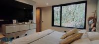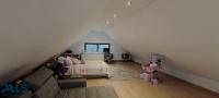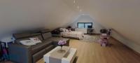 Upon entering the house, you'll find a living and dining room, as well as a kitchen with a modern American-style breakfast bar. It has two bedrooms with en-suite bathrooms and walk-in closets, and on the second floor, an attic space that can be used as a study, TV room, or a third bedroom. It also features a terrace with a BBQ. Modern and eco-friendly design.