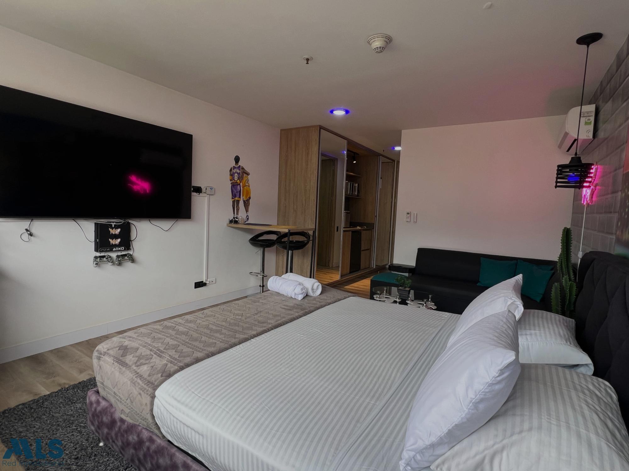 Modern Loft Suite for Sale – Ideal Investment in El Poblado! Be part of one of Medellín's most exclusive and vibrant neighborhoods! This elegant loft suite is located just 10 minutes from Provenza and only a 1-minute walk from the Aguacatala metro station, making it an excellent opportunity for both living and investing. With a modern, functional design and fully furnished, this loft offers everything you need for a comfortable and enjoyable stay: a double bed, air conditioning, a fully equipped kitchen, and stylish spaces. Thanks to its strategic location, which allows for short-term rentals, it's an ideal option for investors seeking high returns in an area with constant tourist demand. The building features 24/7 security, a gym, and a terrace with spectacular panoramic views, completing an unbeatable experience. A property ready to generate income or to enjoy the urban lifestyle of El Poblado!