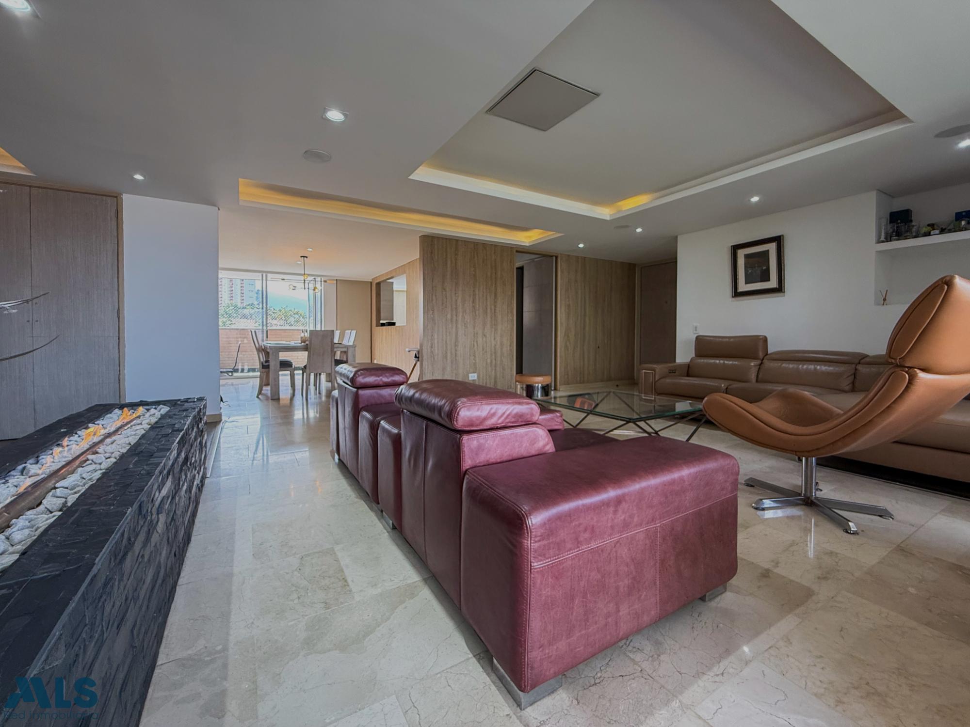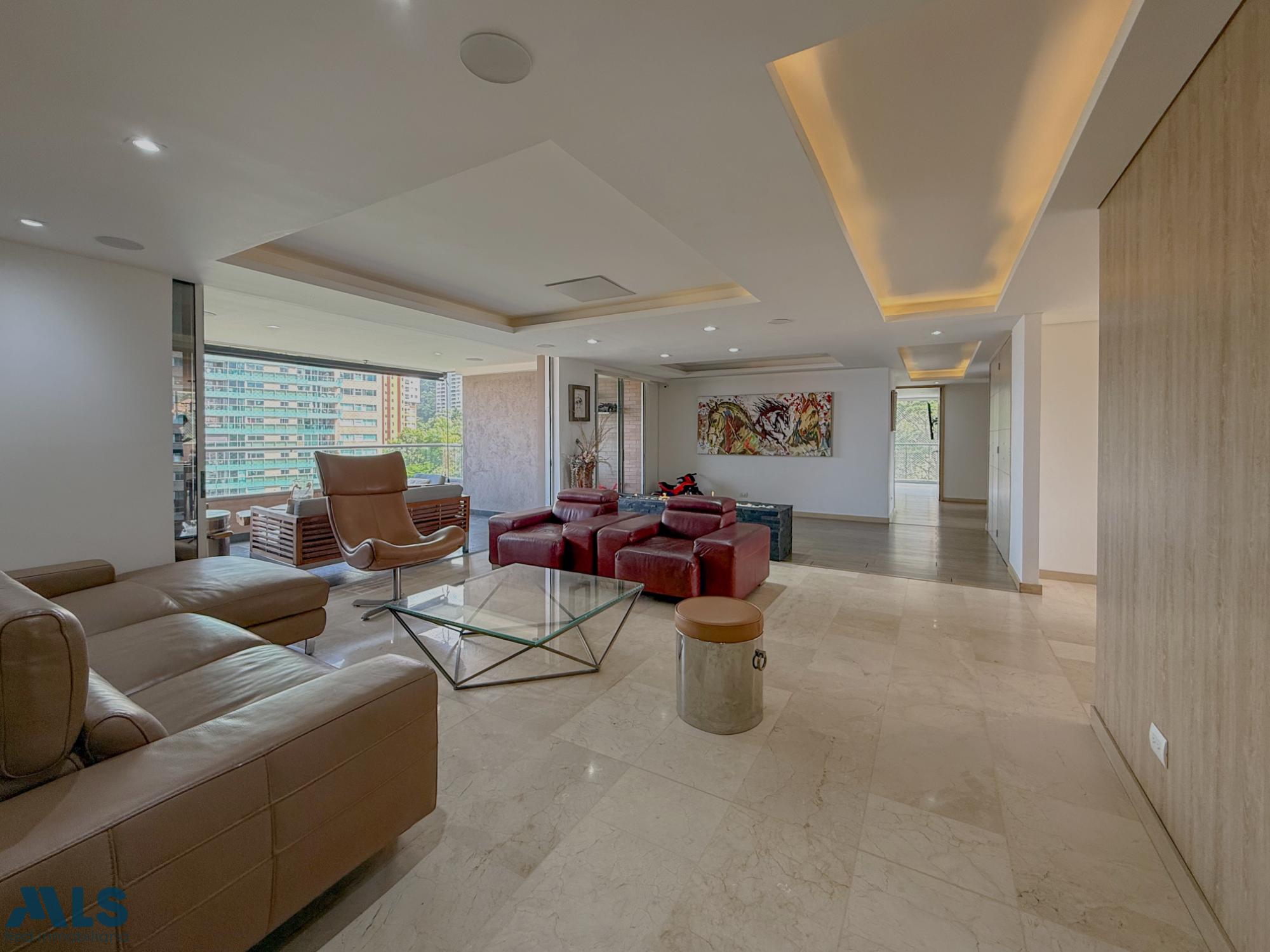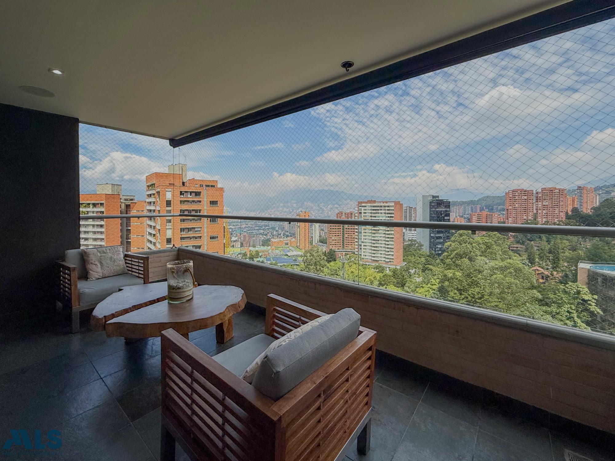 Beautiful, spacious apartment located in an exclusive area of El Poblado, close to all amenities such as shopping centers, hospitals, schools, and more. It features 240 square meters distributed among 3 bedrooms with en-suite bathrooms and walk-in closets, a separate study, a guest bathroom, a dining room, a large living room, a semi-open kitchen, a maid's quarters with a bathroom, and 3 balconies with beautiful city and mountain views. It also includes 3 parking spaces and 2 storage units. Partially remodeled, it features home automation for lighting, curtains, and sound. The building offers complete common areas.