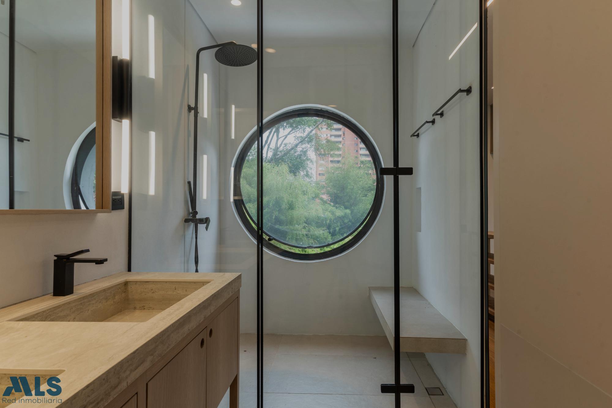This apartment boasts a prime location. It's an exclusive, modern, seven-story building with only two apartments per floor. The design, surrounded by lush greenery, creates a fresh and inviting atmosphere. Cross-ventilation is key, prioritizing a connection to the outdoors through framed views and strategic openings. A circular window adds a subtle yet distinctive touch, bringing dynamism and character. This is the ideal apartment for you, just two minutes from El Tesoro shopping center. It features two bedrooms plus a maid's quarters, currently used as an office. Floor-to-ceiling windows provide excellent natural light, and there's a spacious and beautiful walk-in closet and a linen closet hidden in the hallway.