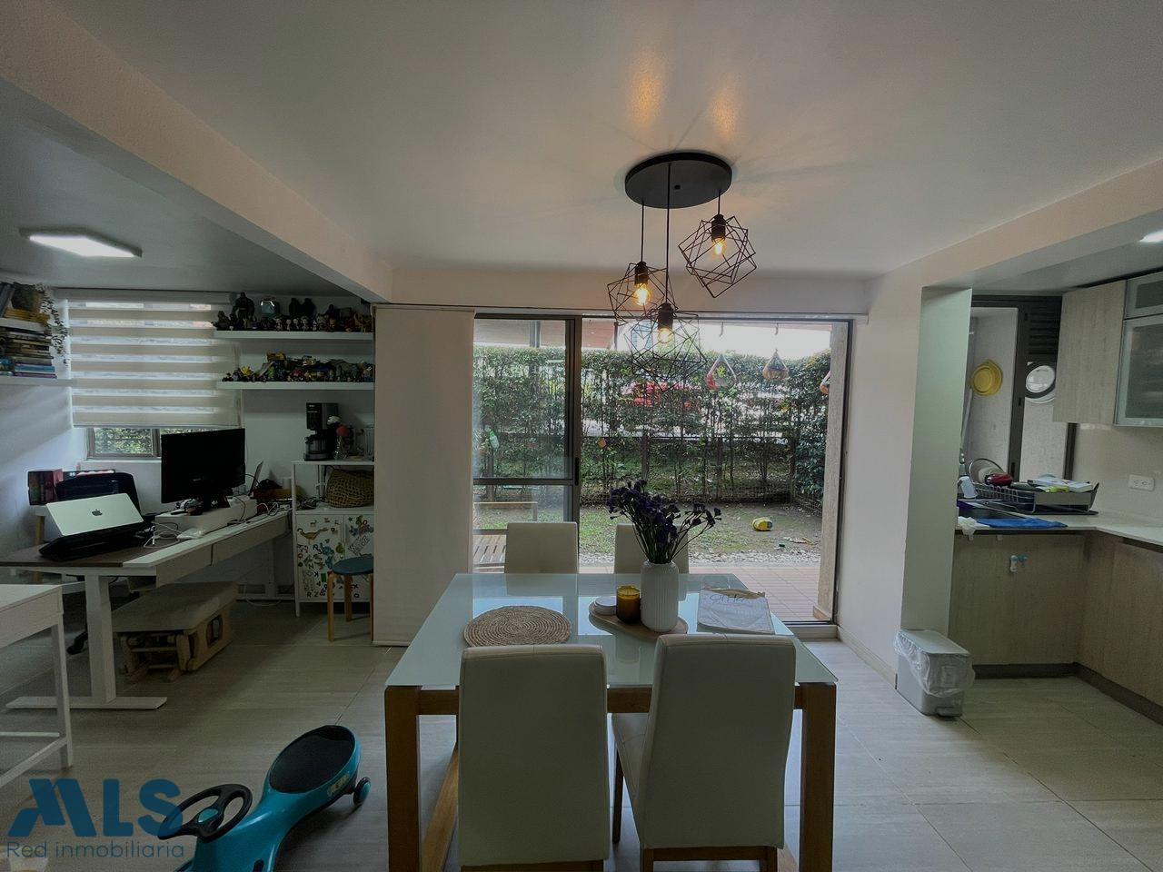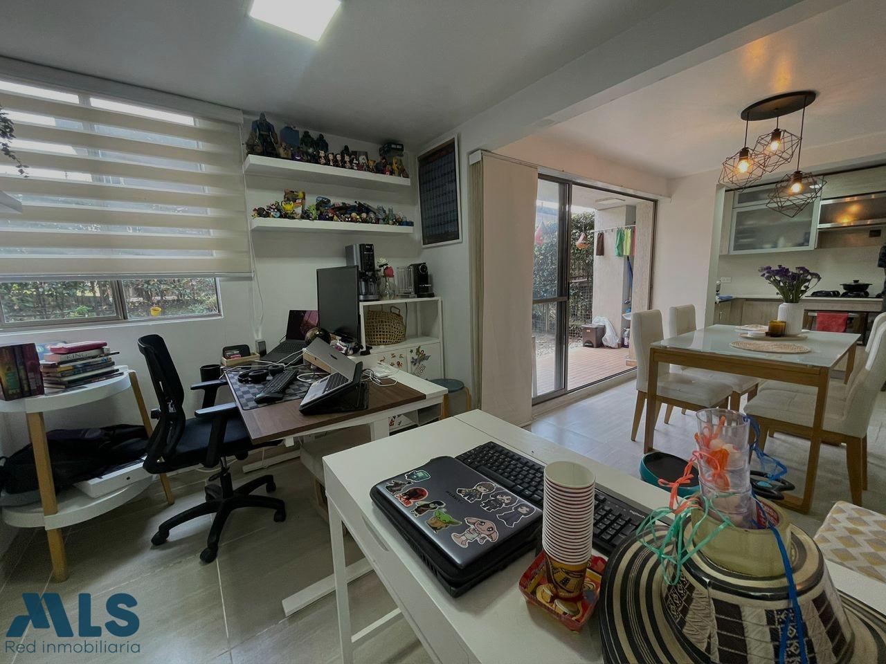 Acogedor apartamento en venta en el sector de Sabaneta. Primer piso con terraza de 64 m2 de uso exclusivo del apartamento. El área construida del apartamento es de 79,80 m2 y ofrece 2 alcobas + estudio (originalmente 3) cocina integral + zona de ropas, sala comedor, 2 baños completos y ofrece parqueadero privado y cuarto útil. Totalmente domotizado. La unidad es completa, ofrece gimnasio, salón social, piscinas, parque infantil, zonas verdes, placa polideportiva, sauna, turco, portería 24 horas, parqueadero de visitantes, minimercado y más. Ubicado a 5 minutos del Hospital Venancio Díaz, INDESA Sur, estación dell metro la Estrella a 7 minutos, parque de Sabaneta, Centro Comercial Aves Marías y mucho más.