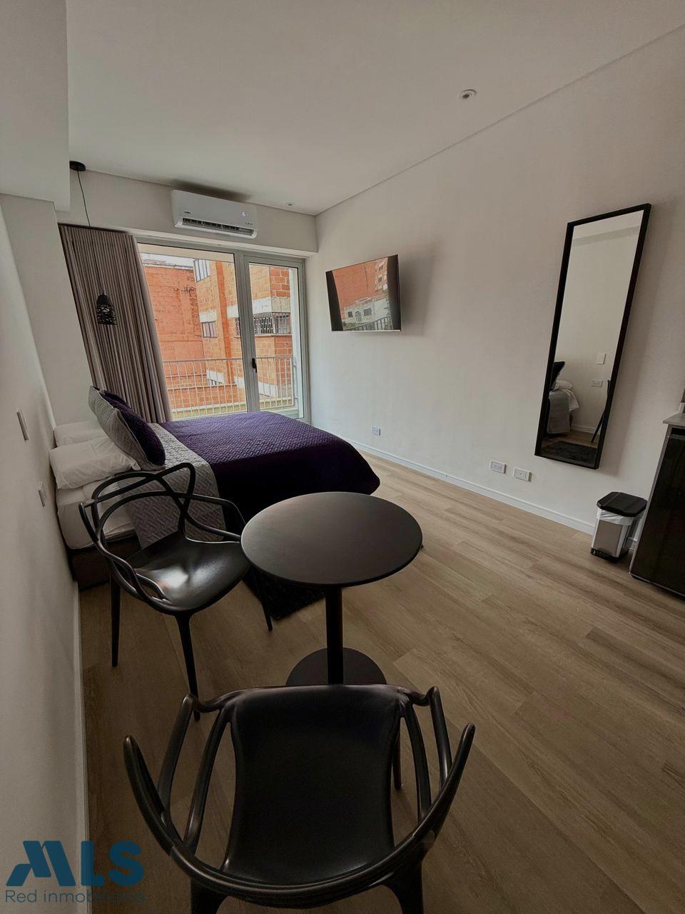 Excellent investment opportunity! Studio apartment for short-term rental located in a rapidly appreciating area with population growth and significant urban and tourist development. It boasts a wide range of dining and tourist attractions, easy access to all forms of transportation, and proximity to shopping centers, universities, entertainment, and nightlife. The versatile and sophisticated design features simple yet inspiring architecture, perfect for those who will enjoy Medellín's tourist attractions.