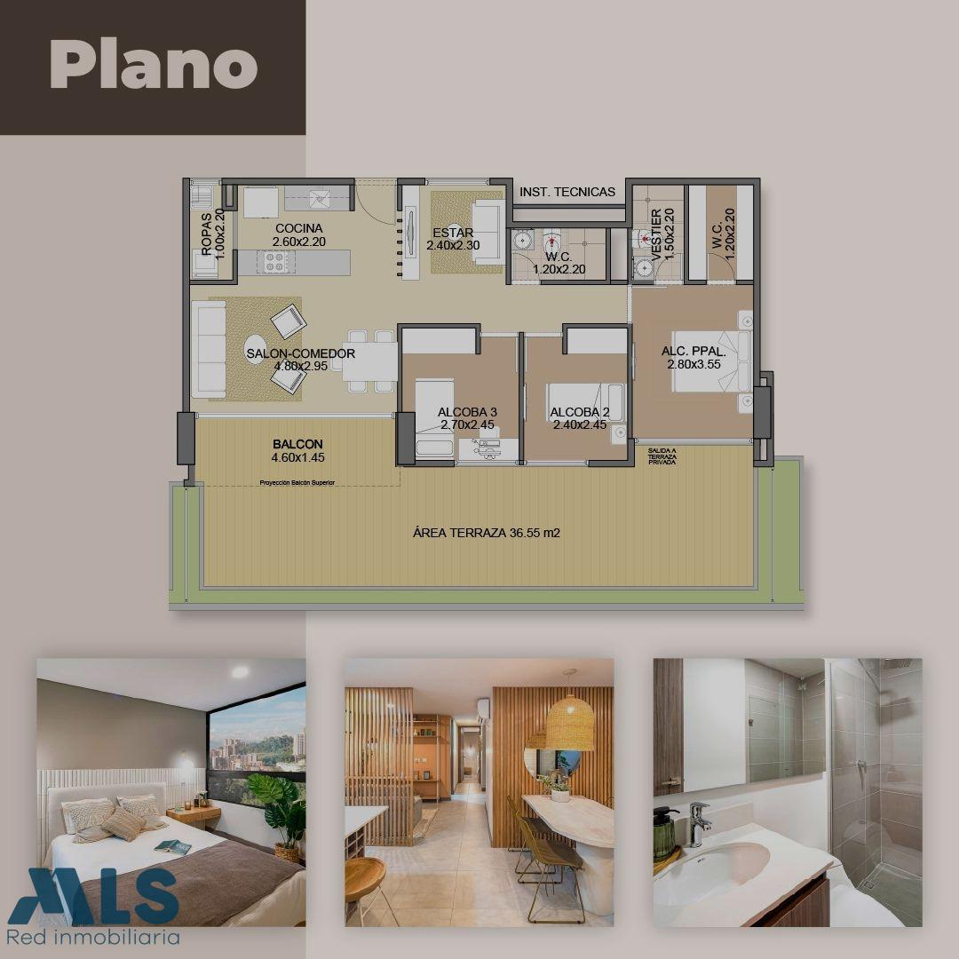 ¡Una excelente oportunidad para vivir en un entorno cómodo y exclusivo! Este amplio apartamento de 120 m² está ubicado en el tranquilo y valorizado sector Camino Verde, Envigado. Cuenta con tres habitaciones, incluyendo la habitación principal con baño privado y vestier, ideal para tu comodidad y privacidad. Además, dispone de dos baños completos para mayor funcionalidad. El apartamento ofrece un diseño moderno y práctico con sala comedor espaciosa, cocina integral abierta perfecta para compartir momentos en familia, zona de ropas independiente y una acogedora sala de estar. Disfruta de una hermosa terraza para relajarte y aprovechar el aire libre. También incluye parqueadero y cuarto útil. La unidad residencial cuenta con excelentes amenidades como piscina, gimnasio, lavandería y seguridad 24 horas, garantizando confort y tranquilidad para ti y tu familia. ¡No pierdas la oportunidad de vivir en uno de los mejores lugares de Envigado!