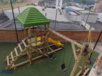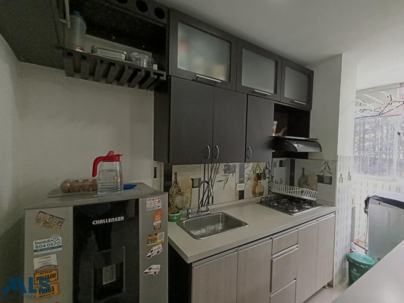 2 alcobas con posibilidad de la tercera, sala comedor, 2 baños, 1 en la alcoba principal, ventanal, balcón, zona ropas, cocina integral, red de gas, calentador de paso, barra americana, Parqueaderos de visitantes, unidad completa con portería permanente, zona comercial en el 1er nivel, piscina, juegos infantiles, cancha múltiple. cerca a la estación la estrella del metro.
